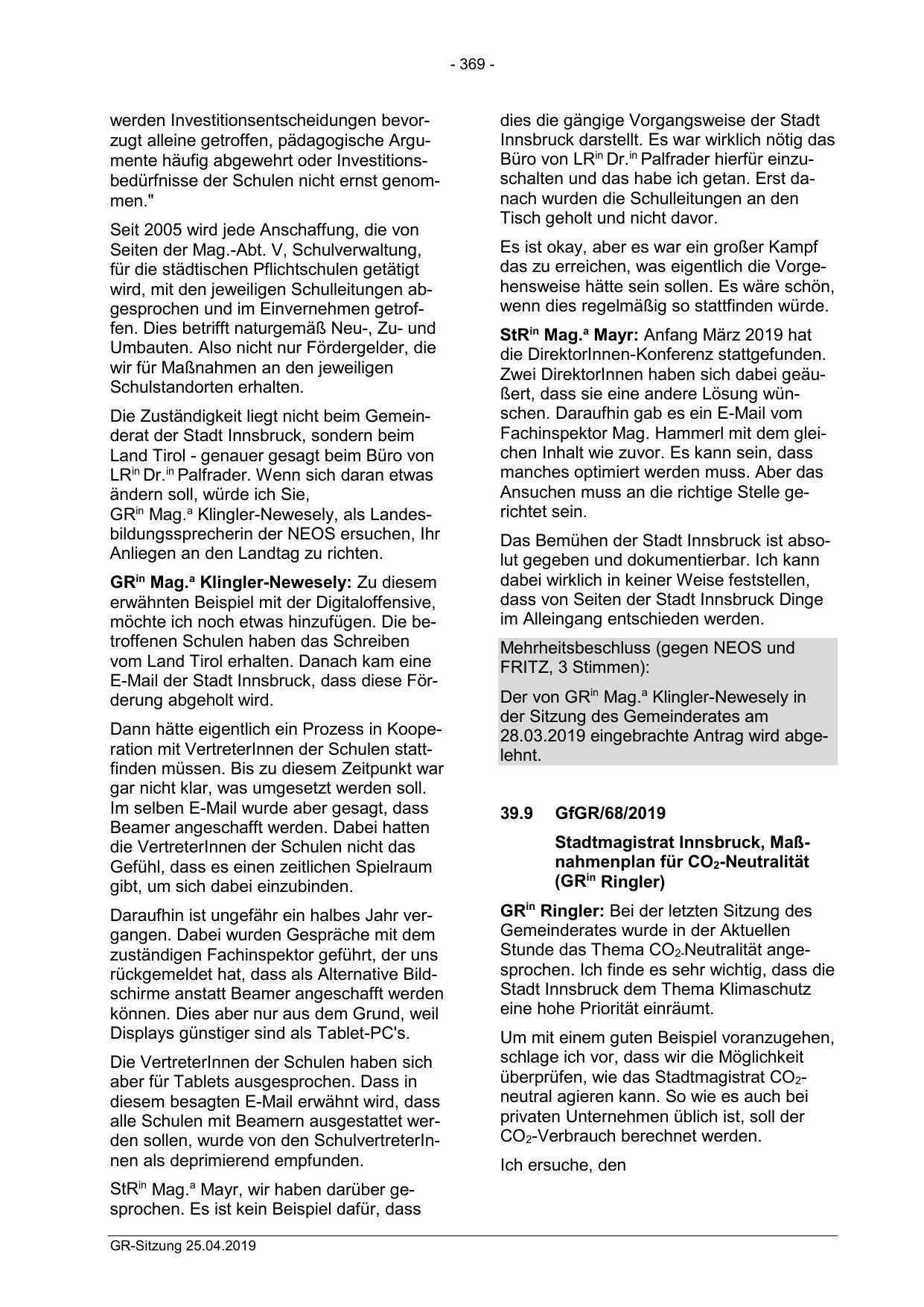 GR-Sitzung 25.04.2019