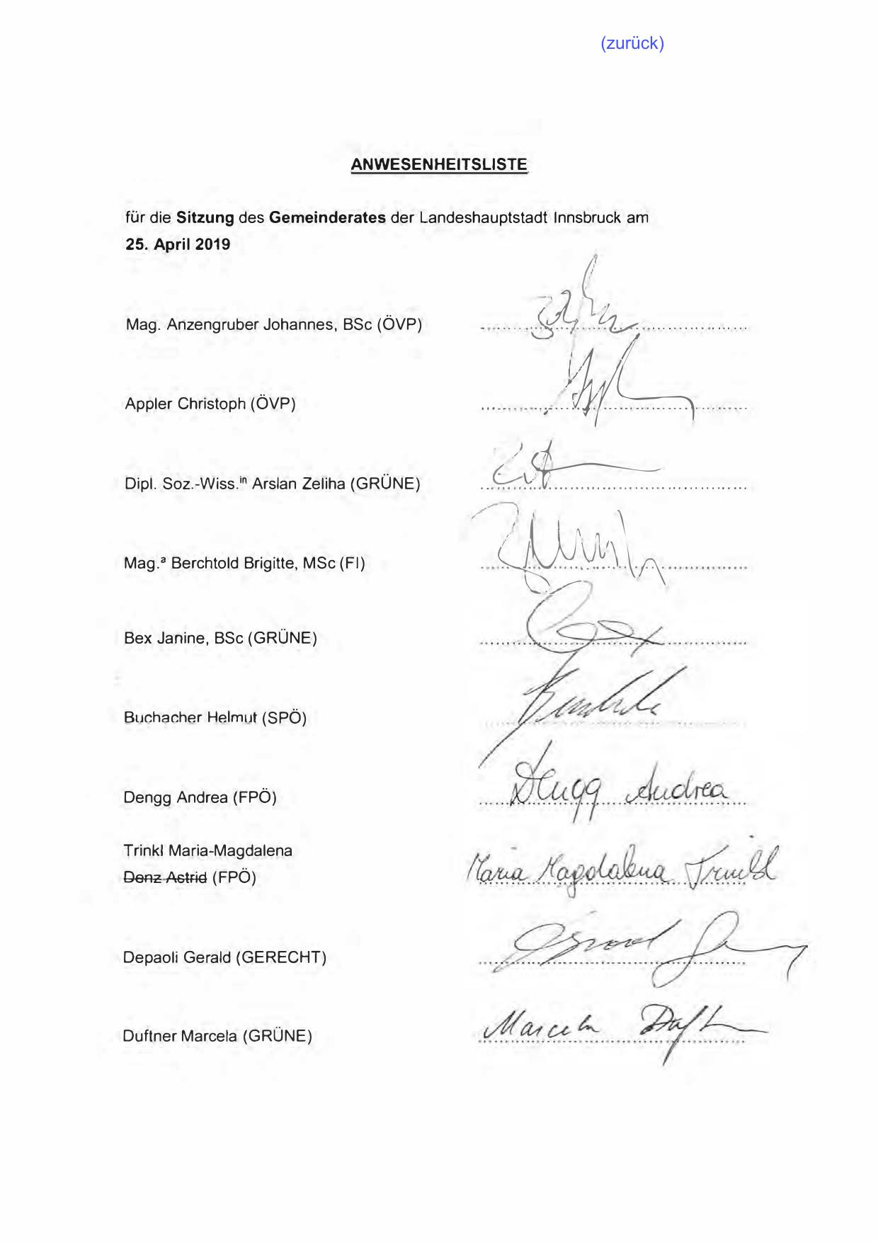 für die Sitzung des Gemeinderates der Landeshauptstadt Innsbruck am