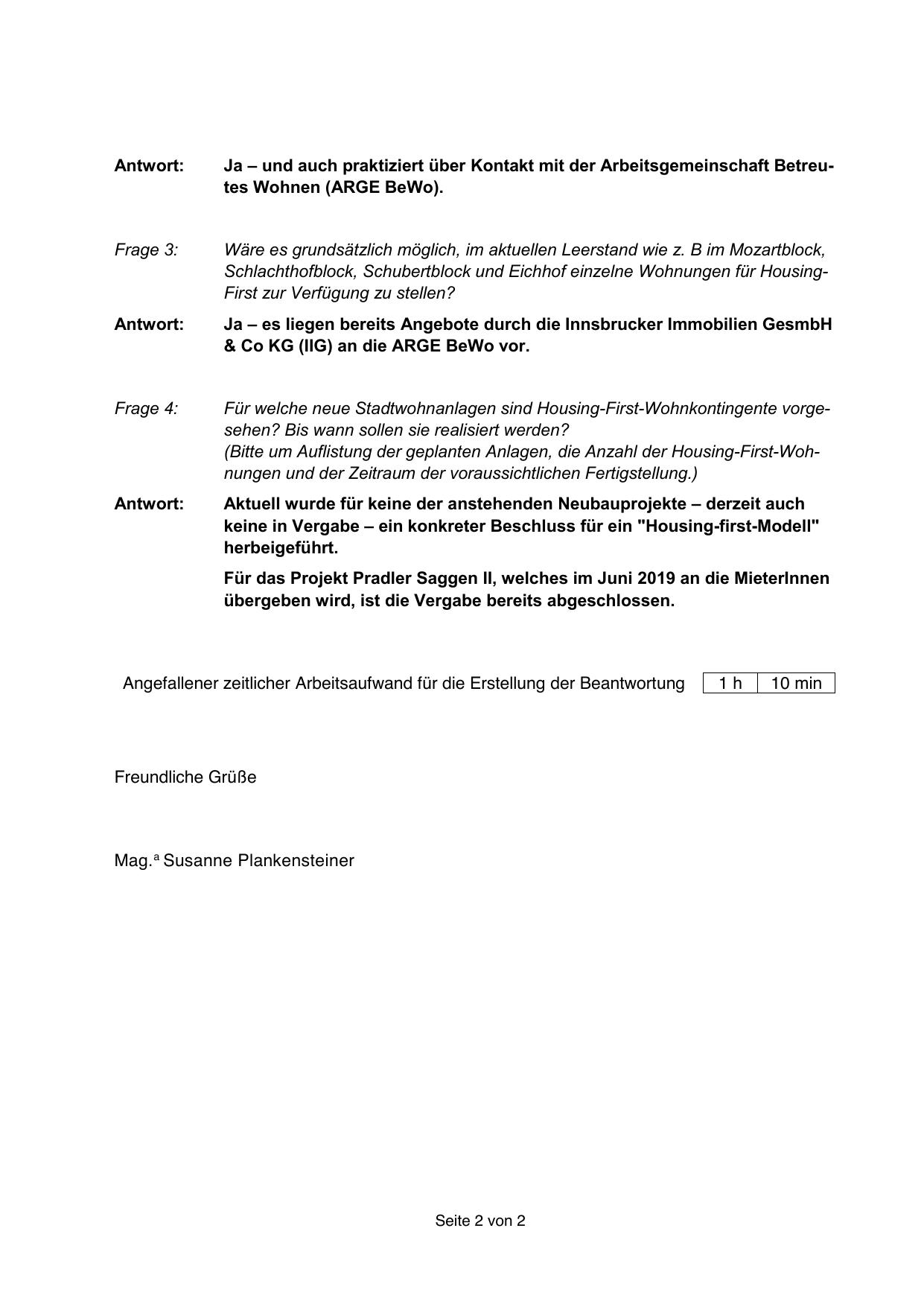 Angefallener zeitlicher Arbeitsaufwand für die Erstellung der Beantwortung