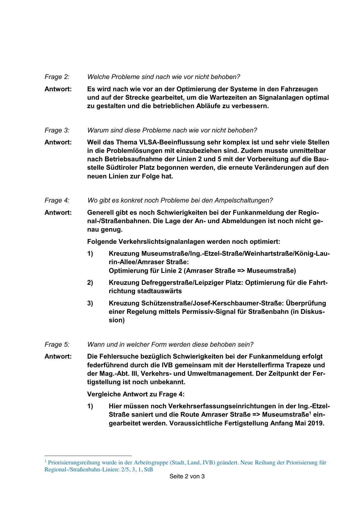 Priorisierungsreihung wurde in der Arbeitsgruppe (Stadt, Land, IVB) geändert. Neue Reihung der Priorisierung für