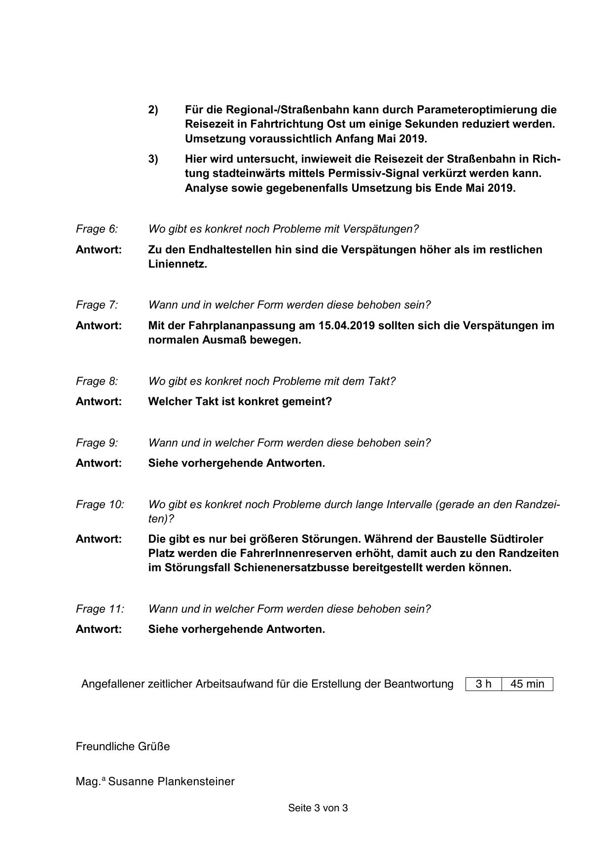 Angefallener zeitlicher Arbeitsaufwand für die Erstellung der Beantwortung