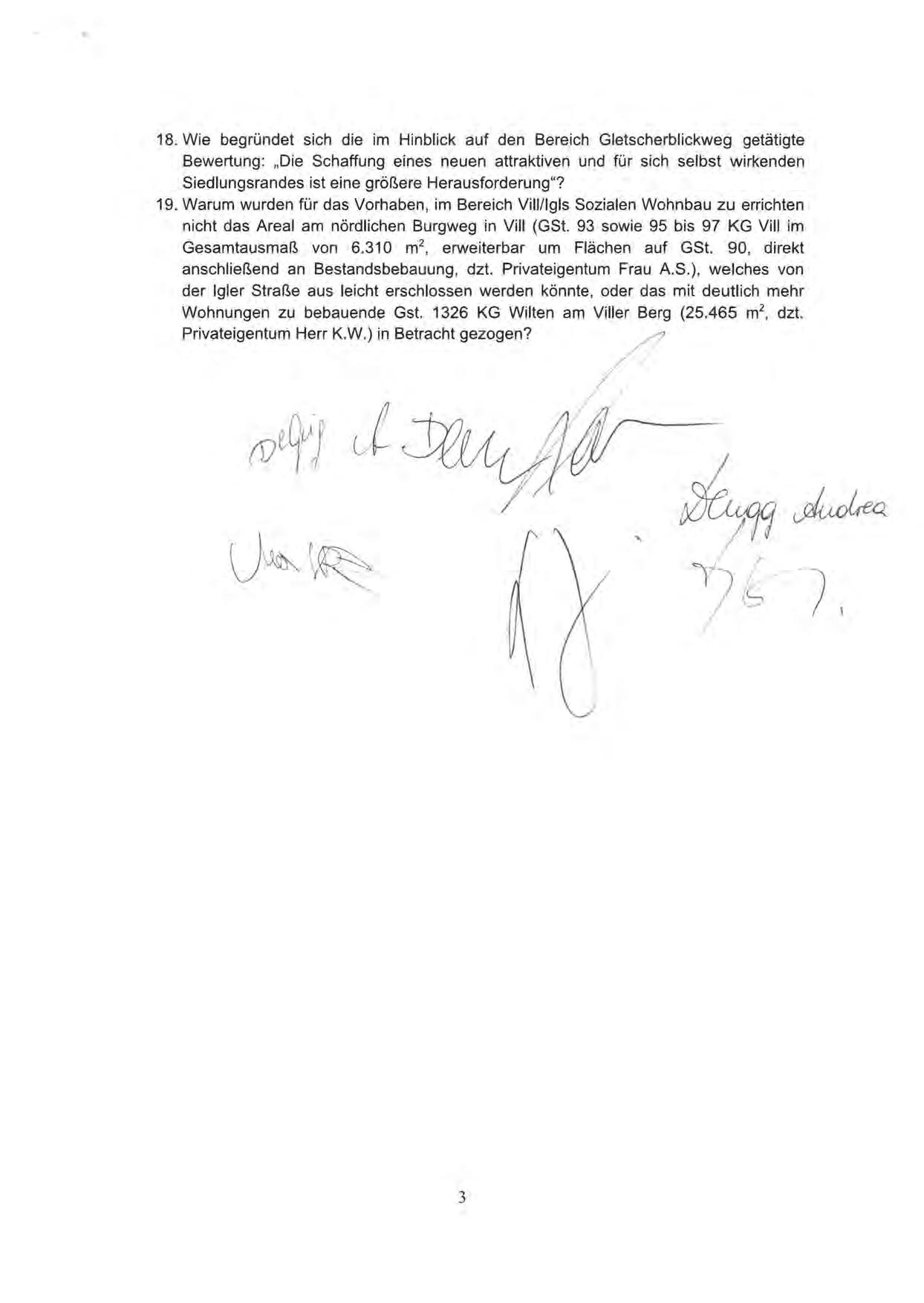 19. Warum wurden für das Vorhaben, im Bereich Vill/Igls Sozialen Wohnbau zu errichten