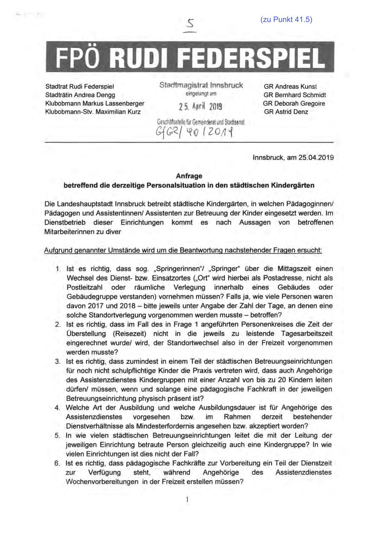 Aufgrund genannter Umstände wird um die Beantwortung nachstehender Fragen ersucht: