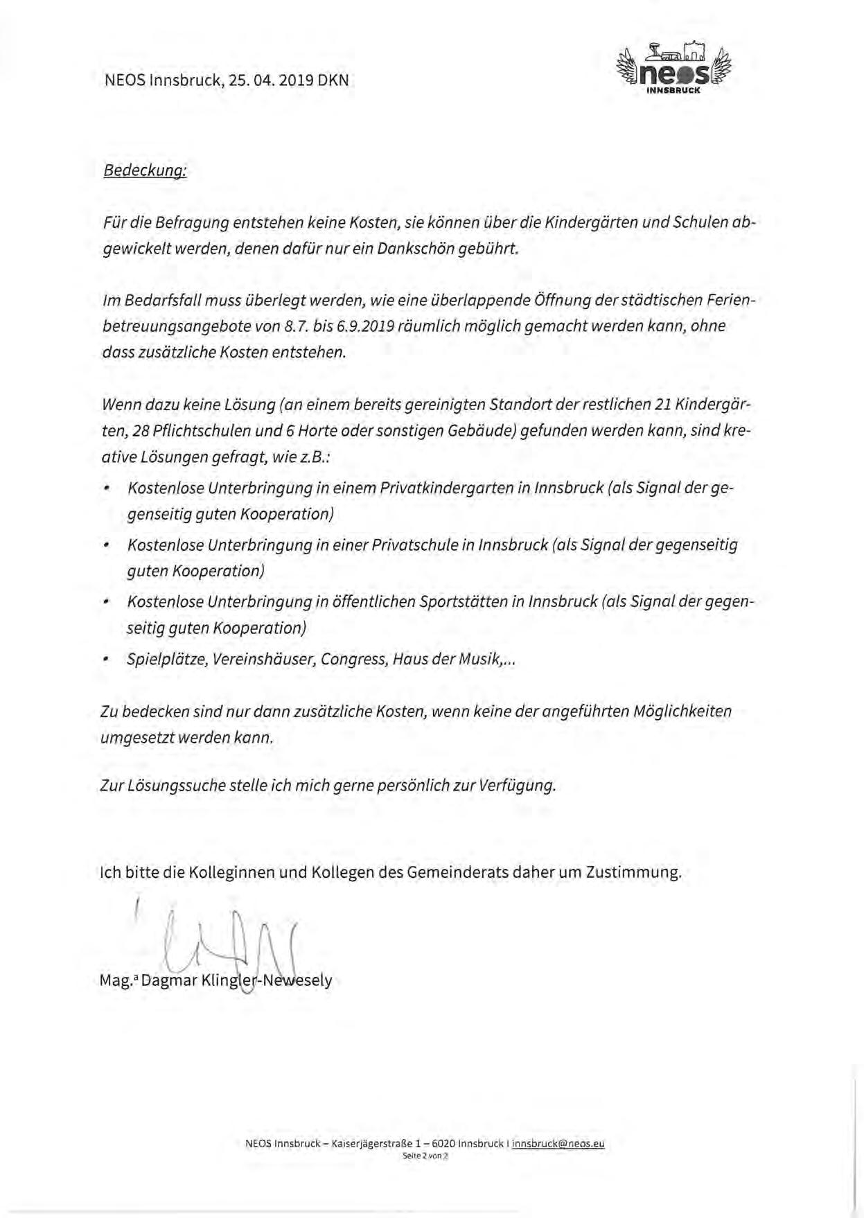 NEOS Innsbruck- Kaiserjägerstraße 1- 6020 Innsbruck I innsbruck@neos.eu