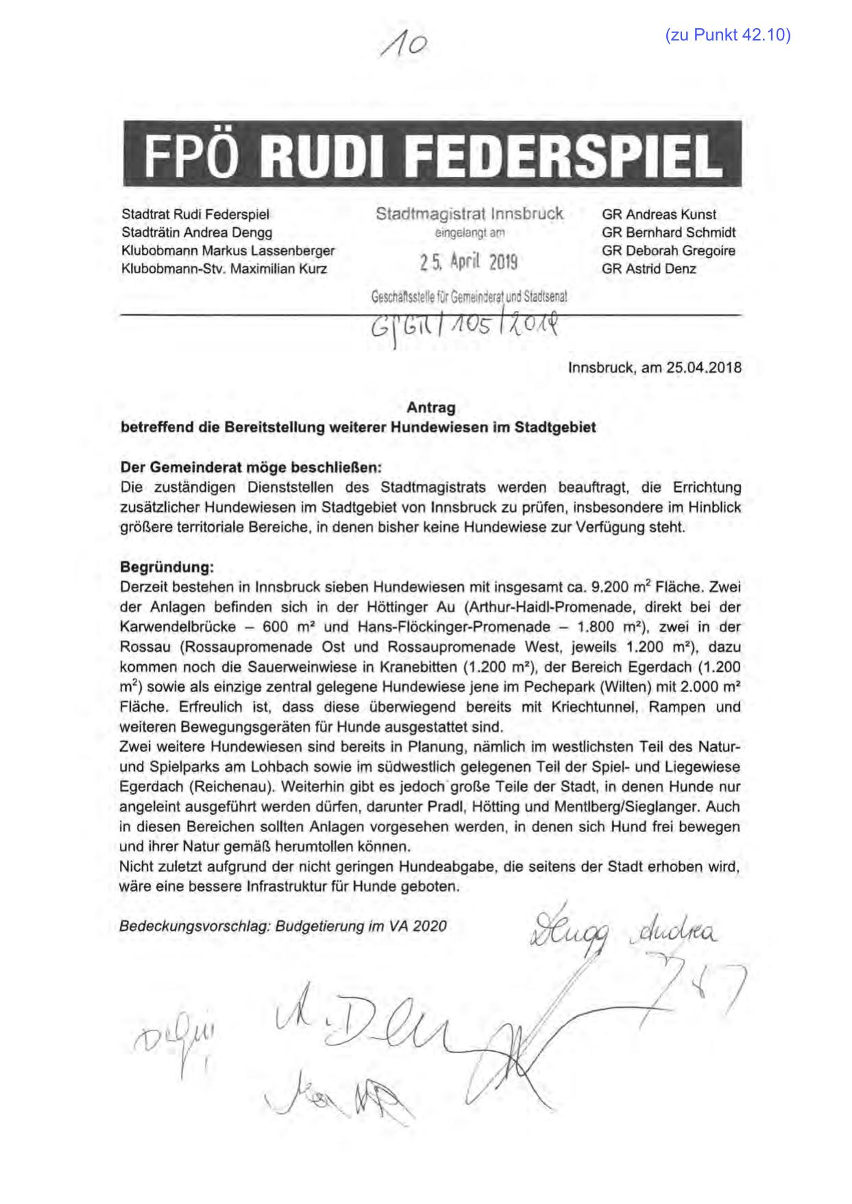 zusätzlicher Hundewiesen im Stadtgebiet von Innsbruck zu prüfen, insbesondere im Hinblick