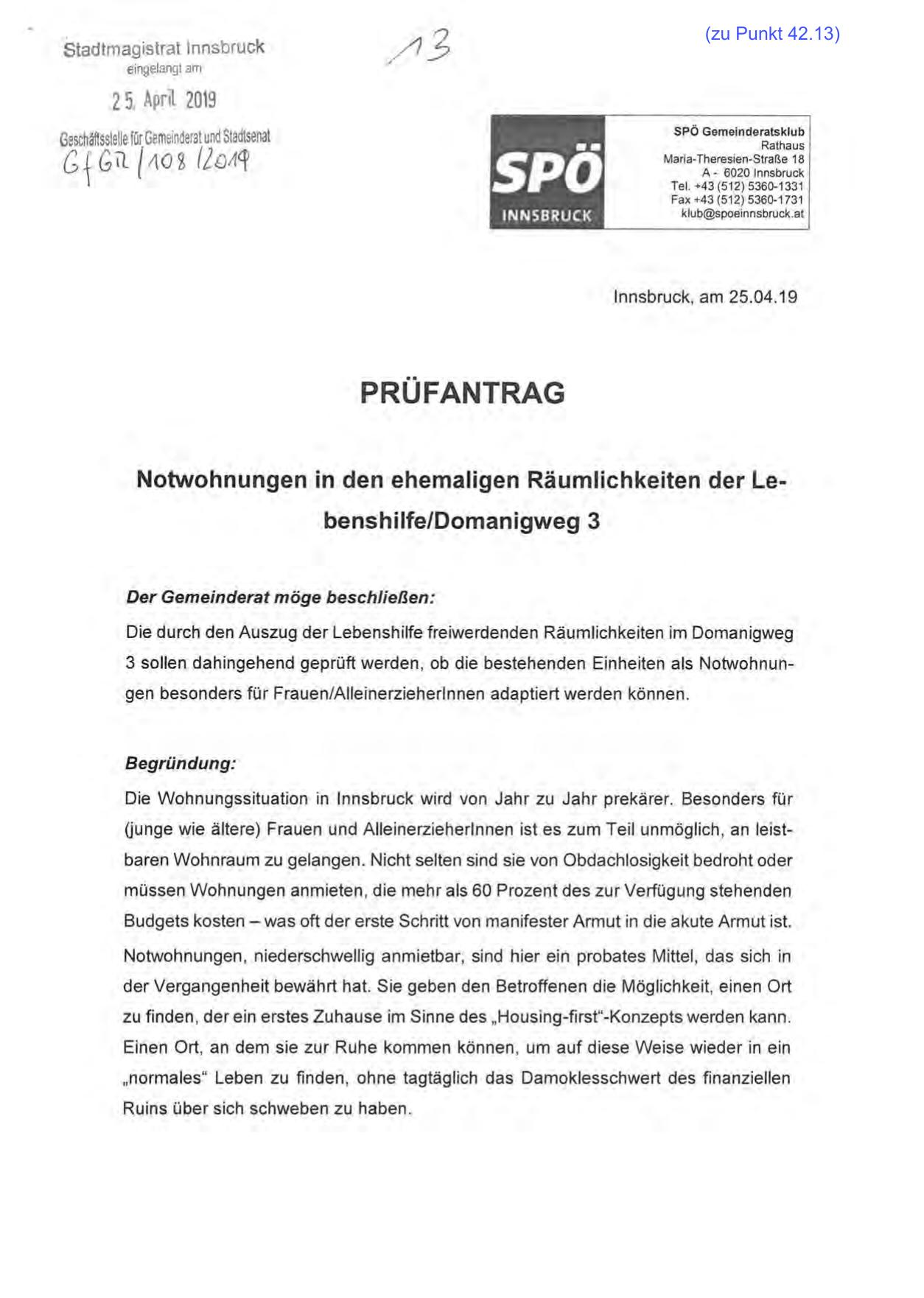 3 sollen dahingehend geprüft werden, ob die bestehenden Einheiten als Notwohnungen besonders für Frauen/Alleinerzieherlnnen adaptiert werden können .