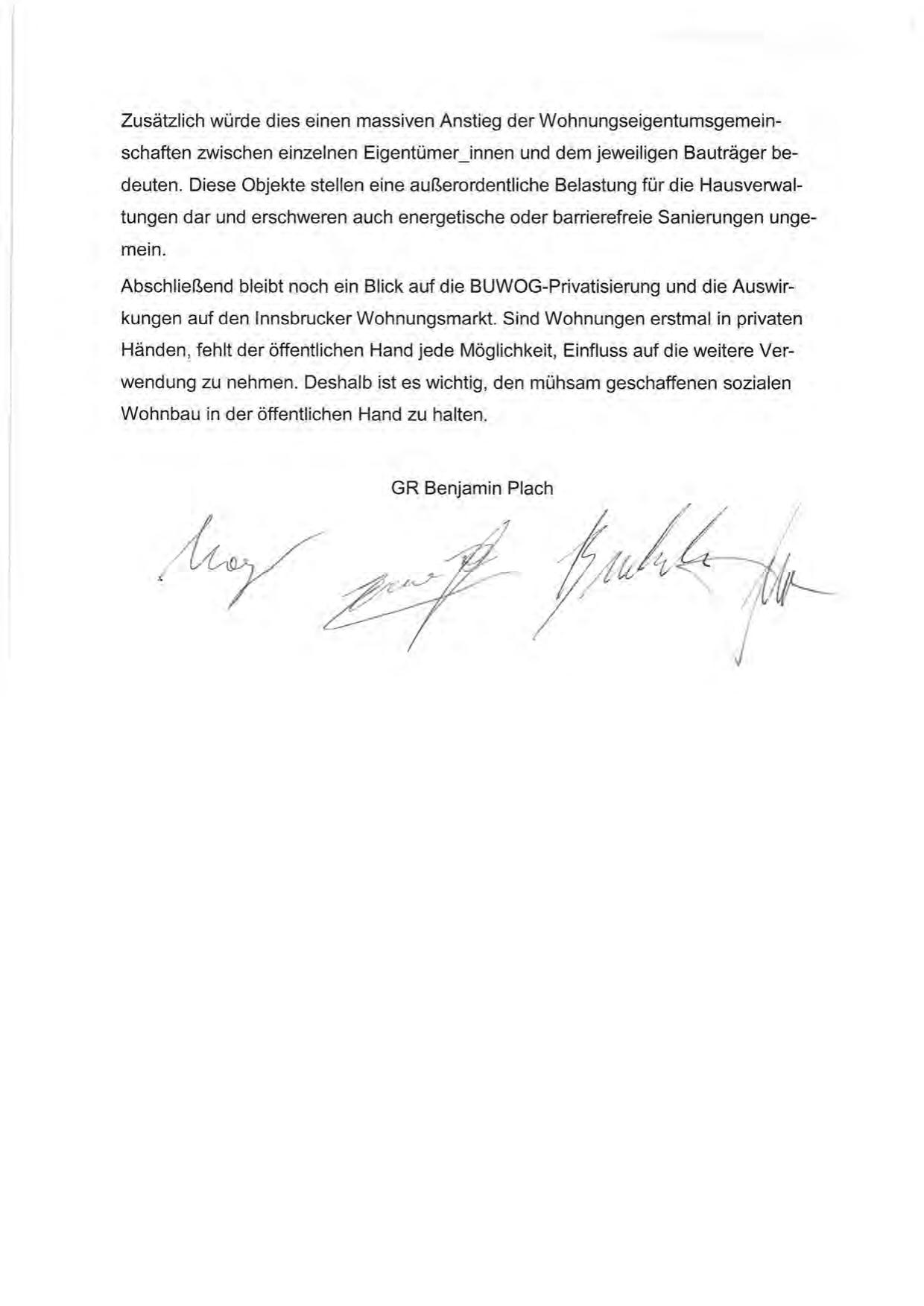 Abschließend bleibt noch ein Blick auf die BUWOG-Privatisierung und die Auswirkungen auf den lnnsbrucker Wohnungsmarkt. Sind Wohnungen erstmal in privaten