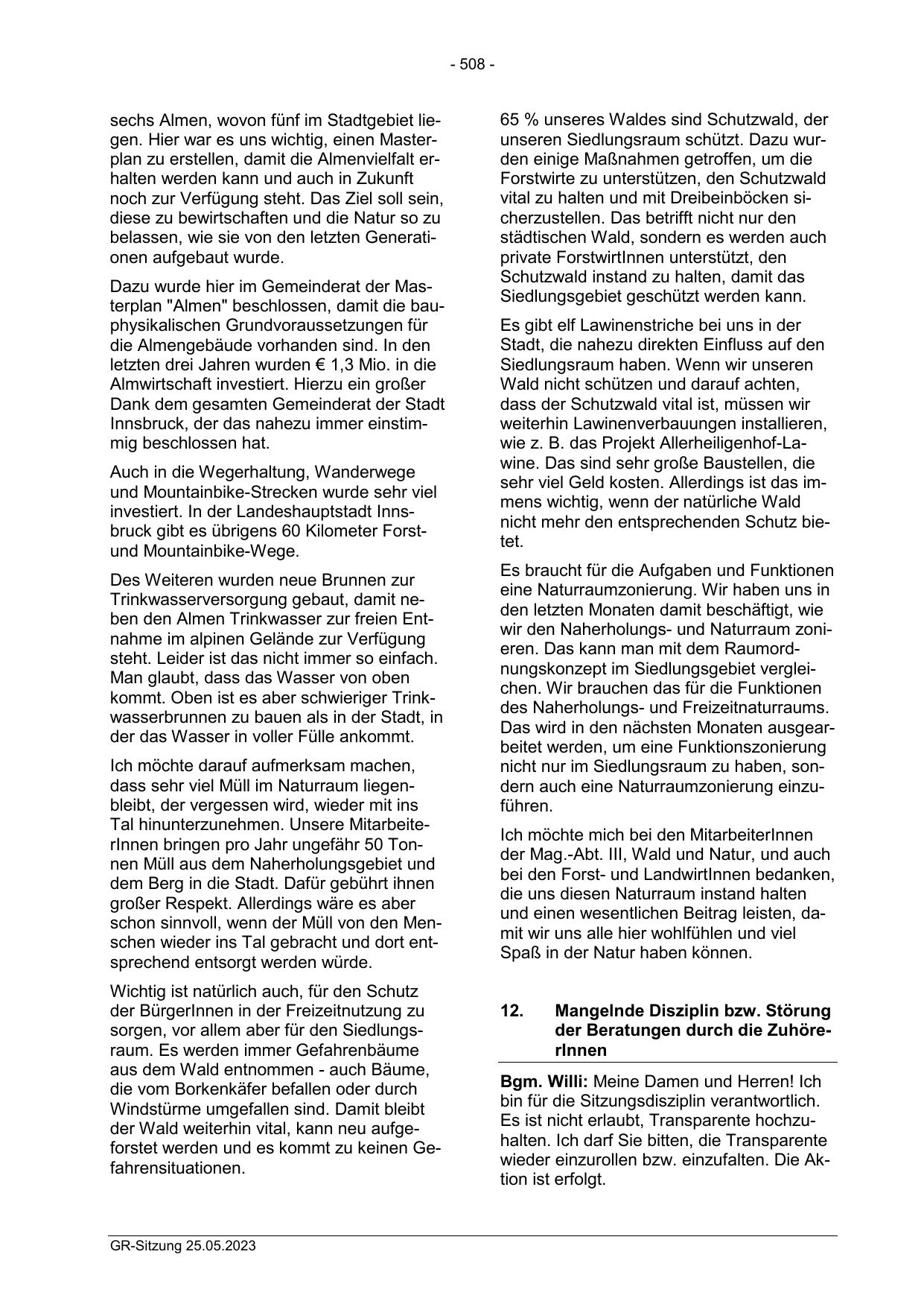 Innsbruck, der das nahezu immer einstimmig beschlossen hat.