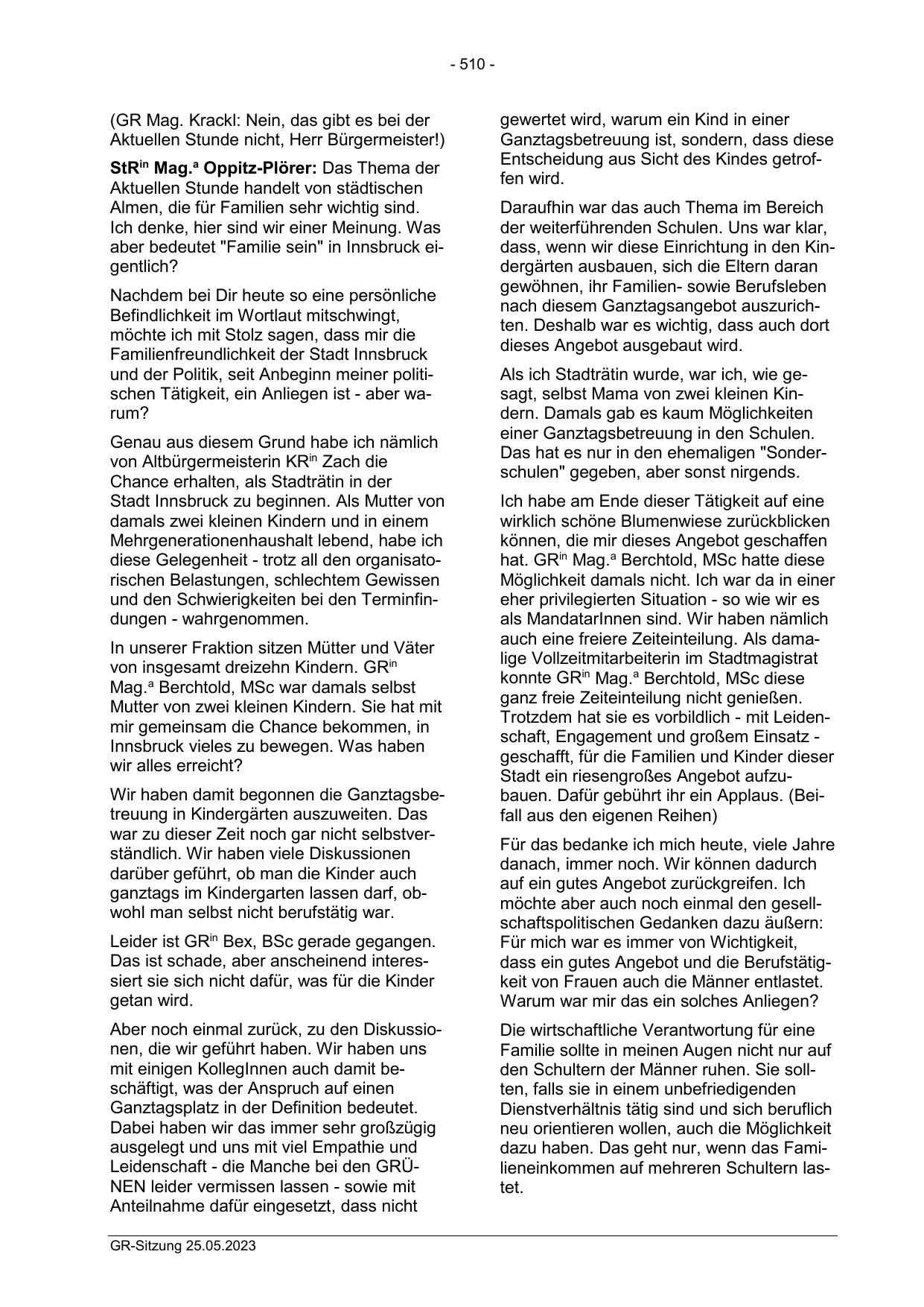 hat. GRin Mag.a Berchtold, MSc hatte diese