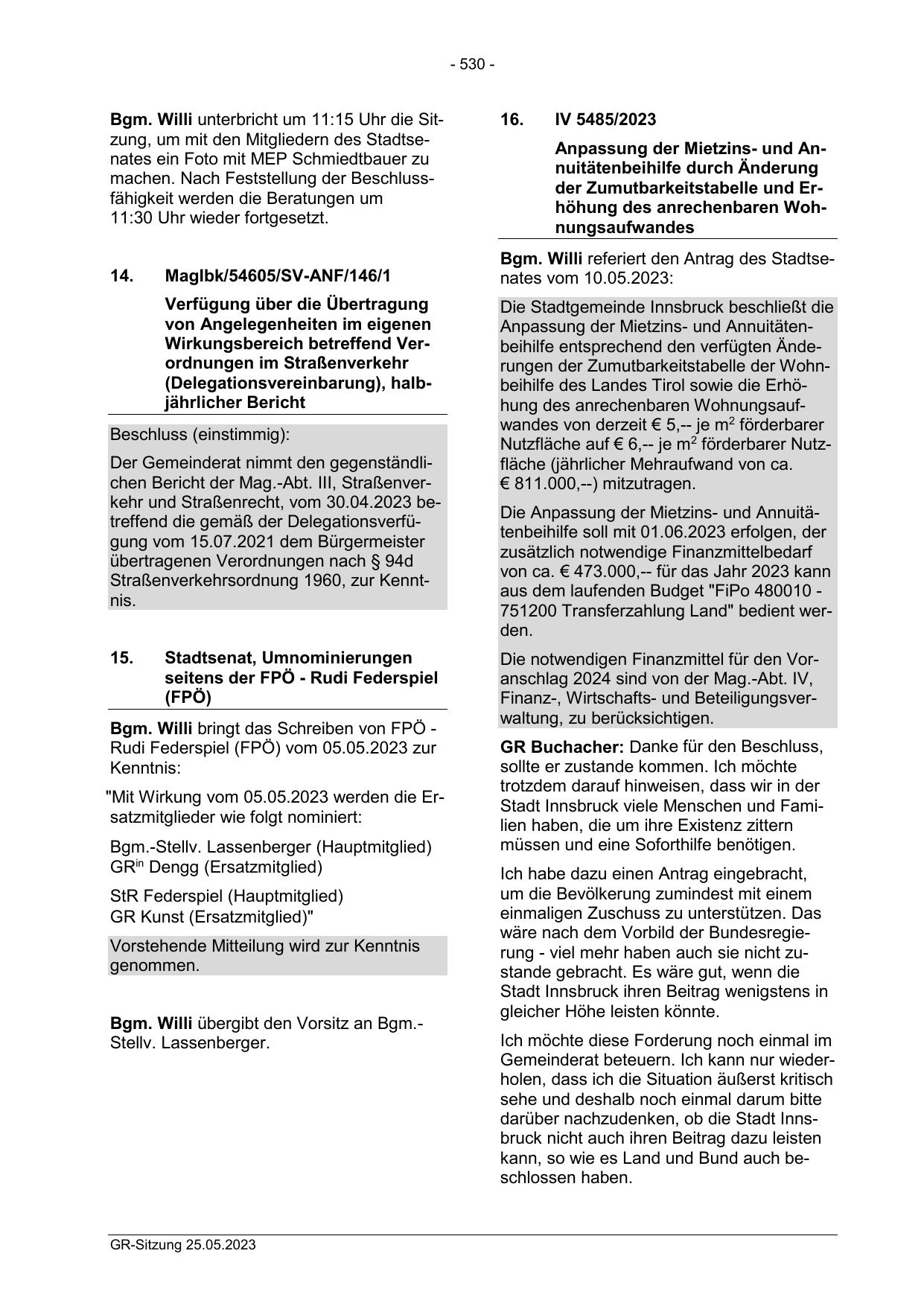 Bgm. Willi bringt das Schreiben von FPÖ Rudi Federspiel (FPÖ) vom 05.05.2023 zur