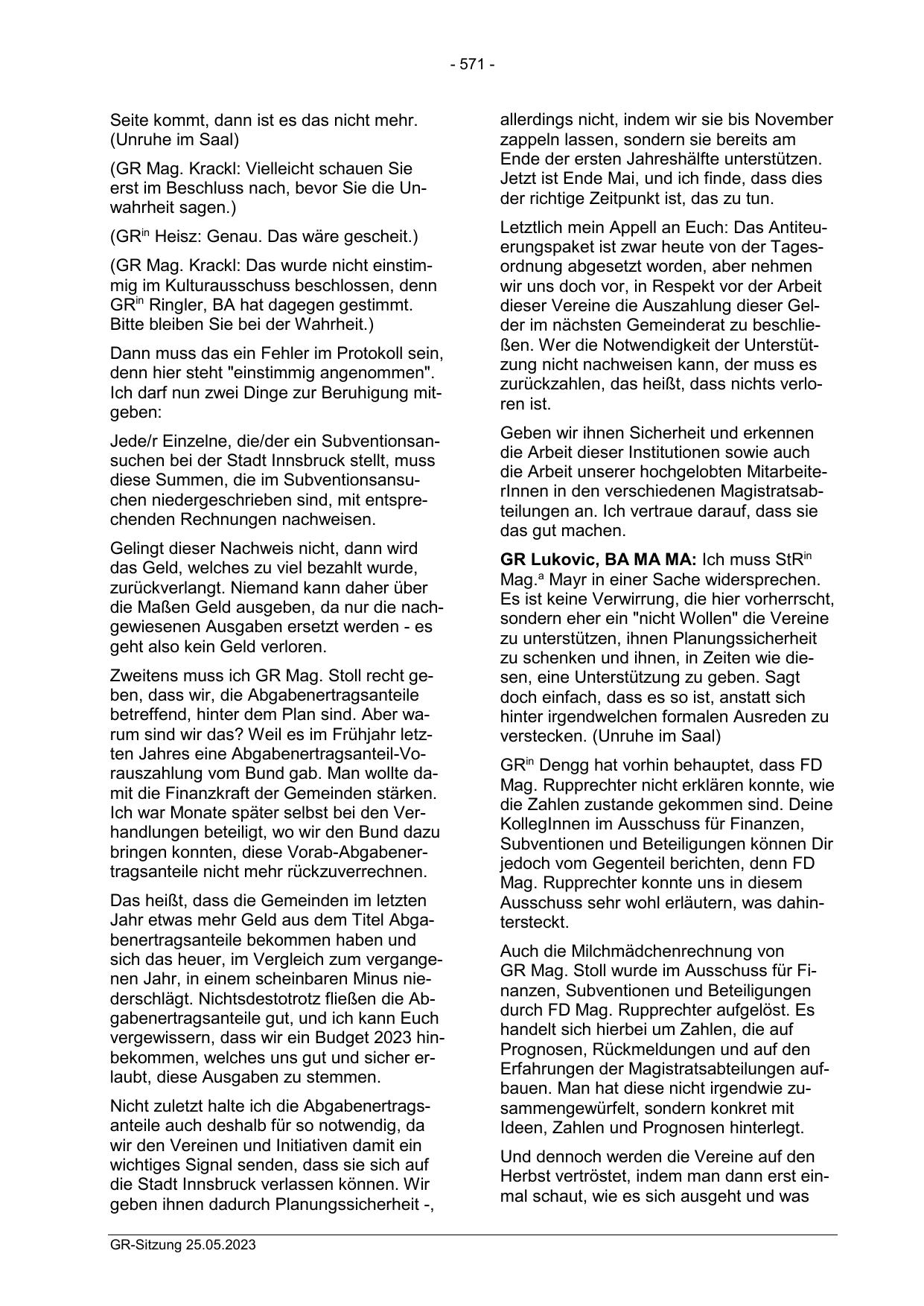 dieser Vereine die Auszahlung dieser Gelder im nächsten Gemeinderat zu beschließen. Wer die Notwendigkeit der Unterstützung nicht nachweisen kann, der muss es