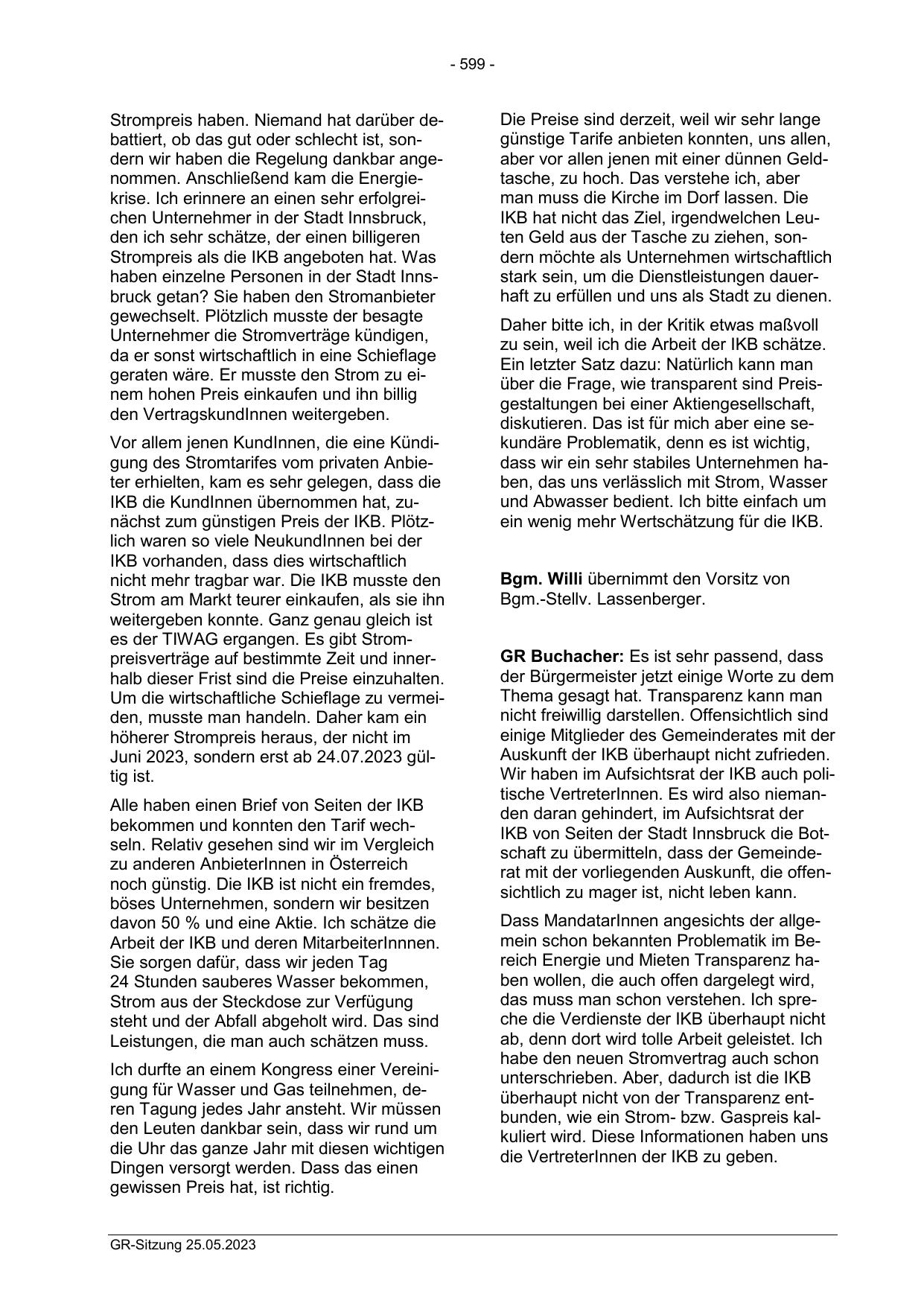 IKB von Seiten der Stadt Innsbruck die Botschaft zu übermitteln, dass der Gemeinderat mit der vorliegenden Auskunft, die offensichtlich zu mager ist, nicht leben kann.