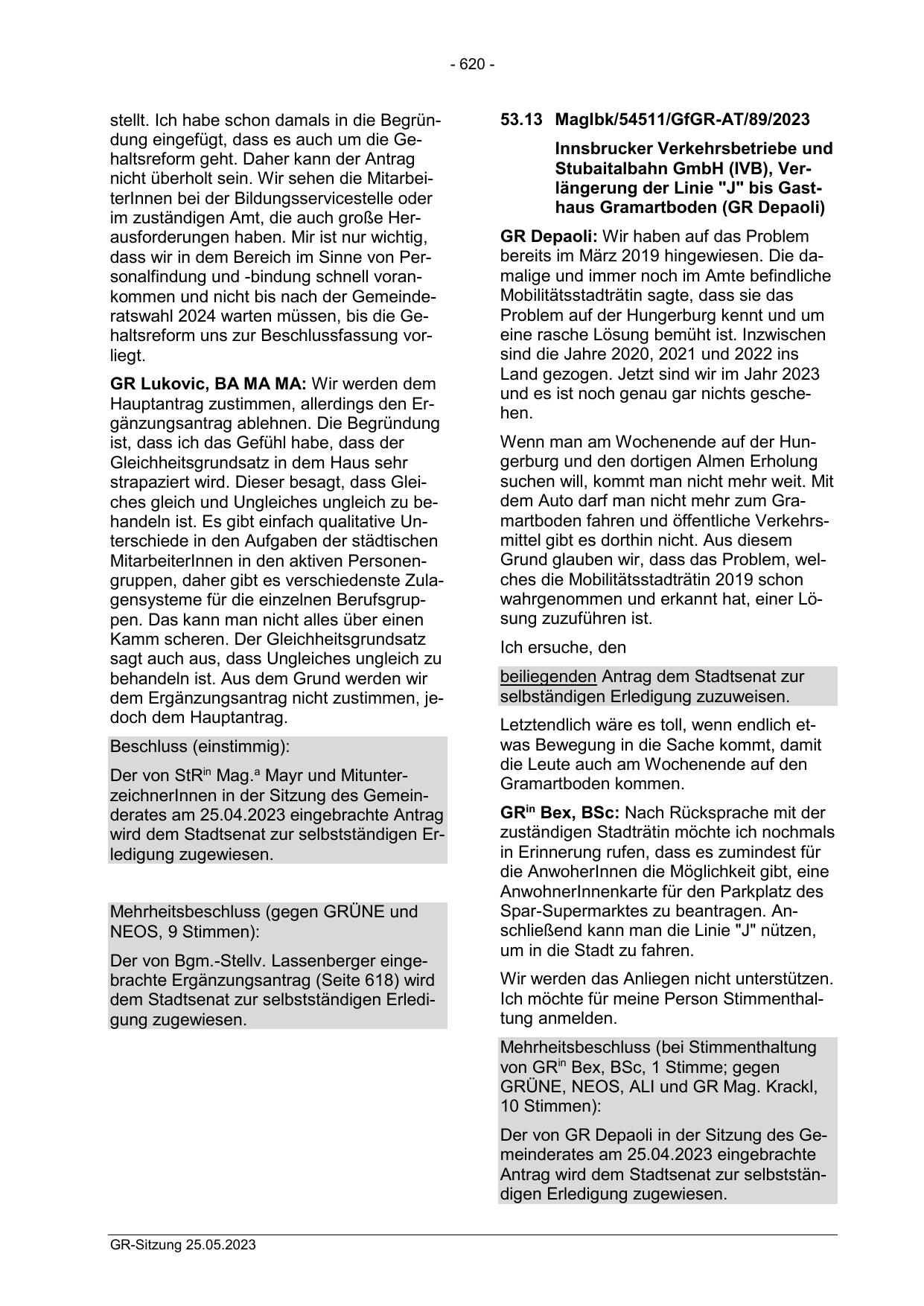 Der von GR Depaoli in der Sitzung des Gemeinderates am 25.04.2023 eingebrachte