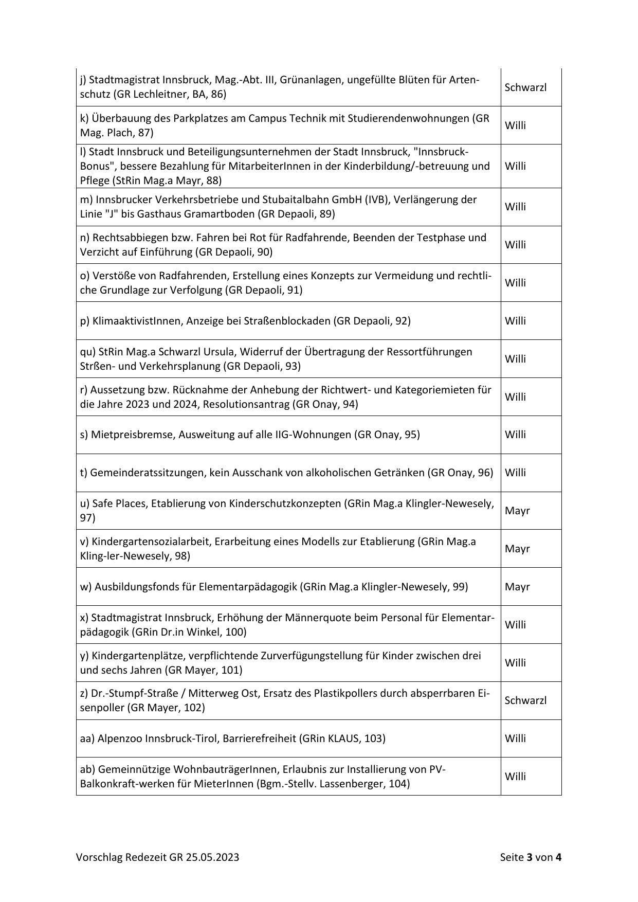 j) Stadtmagistrat Innsbruck, Mag.-Abt. III, Grünanlagen, ungefüllte Blüten für Artenschutz (GR Lechleitner, BA, 86)