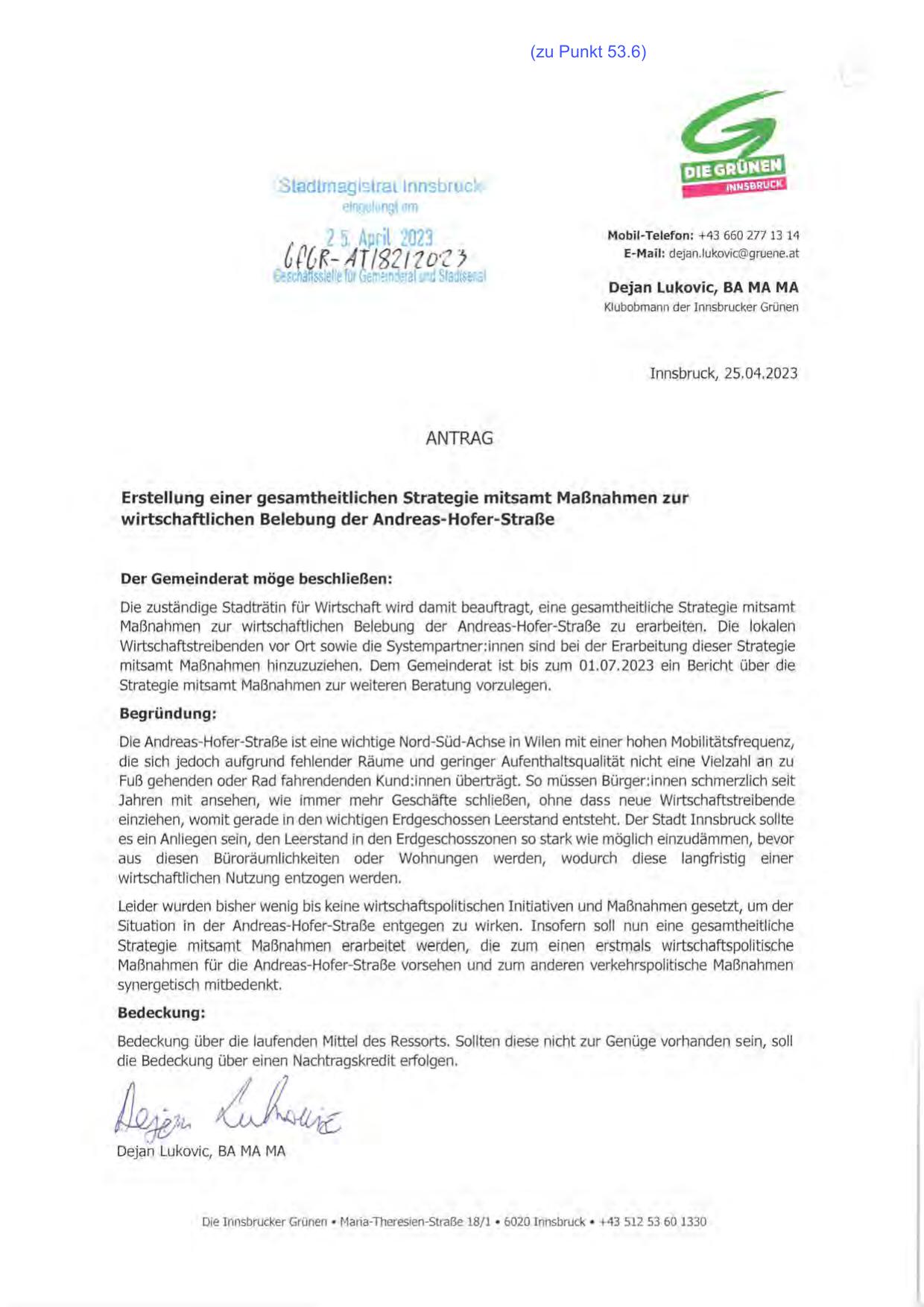 Maßnahmen zur wirtschaftlichen Belebung der Andreas-Hafer-Straße zu erarbeiten. Die lokalen