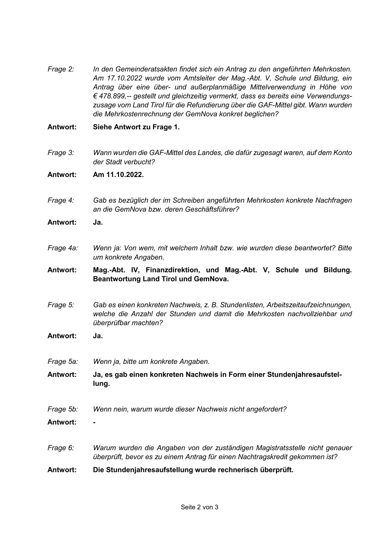 Beantwortung Land Tirol und GemNova.