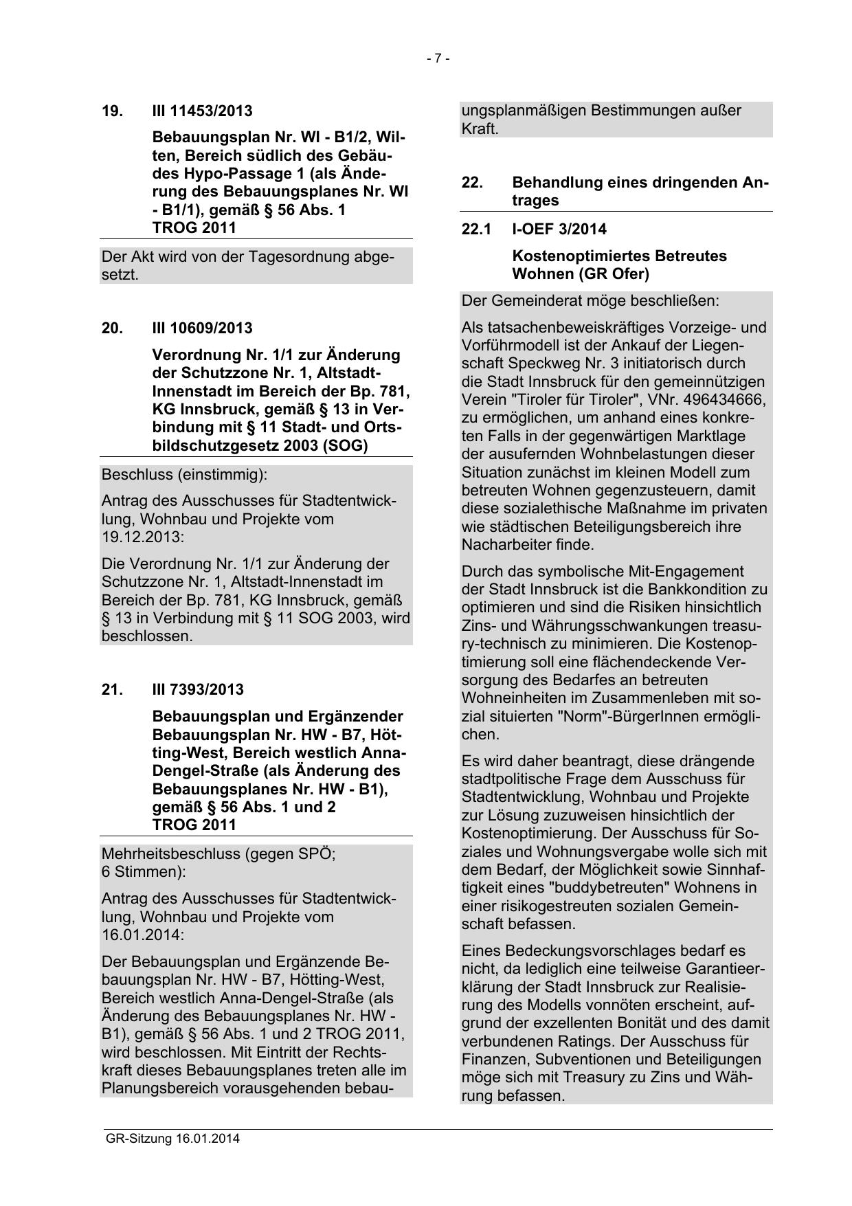 Bebauungsplan Nr. WI - B1/2, Wilten, Bereich südlich des Gebäudes Hypo-Passage 1 (als Änderung des Bebauungsplanes Nr. WI