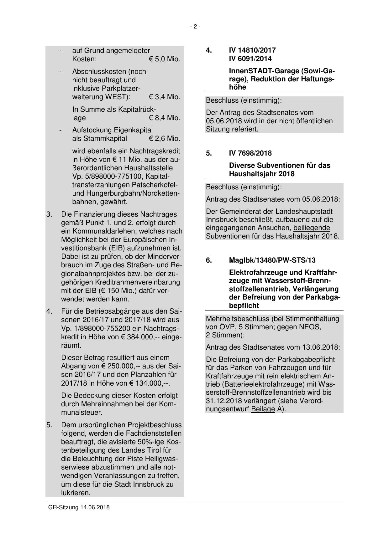 Vp. 5/898000-775100, Kapitaltransferzahlungen Patscherkofelund Hungerburgbahn/Nordkettenbahnen, gewährt.