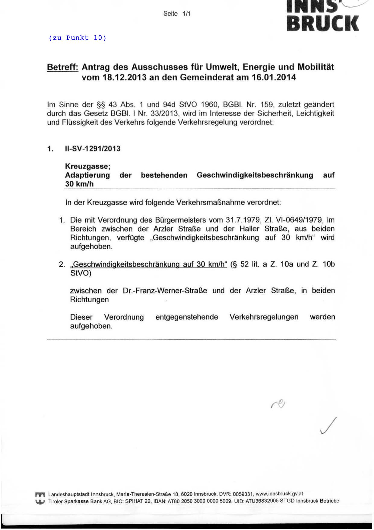 In der Kreuzgasse wird folgende Verkehrsmaßnahme verordnet: