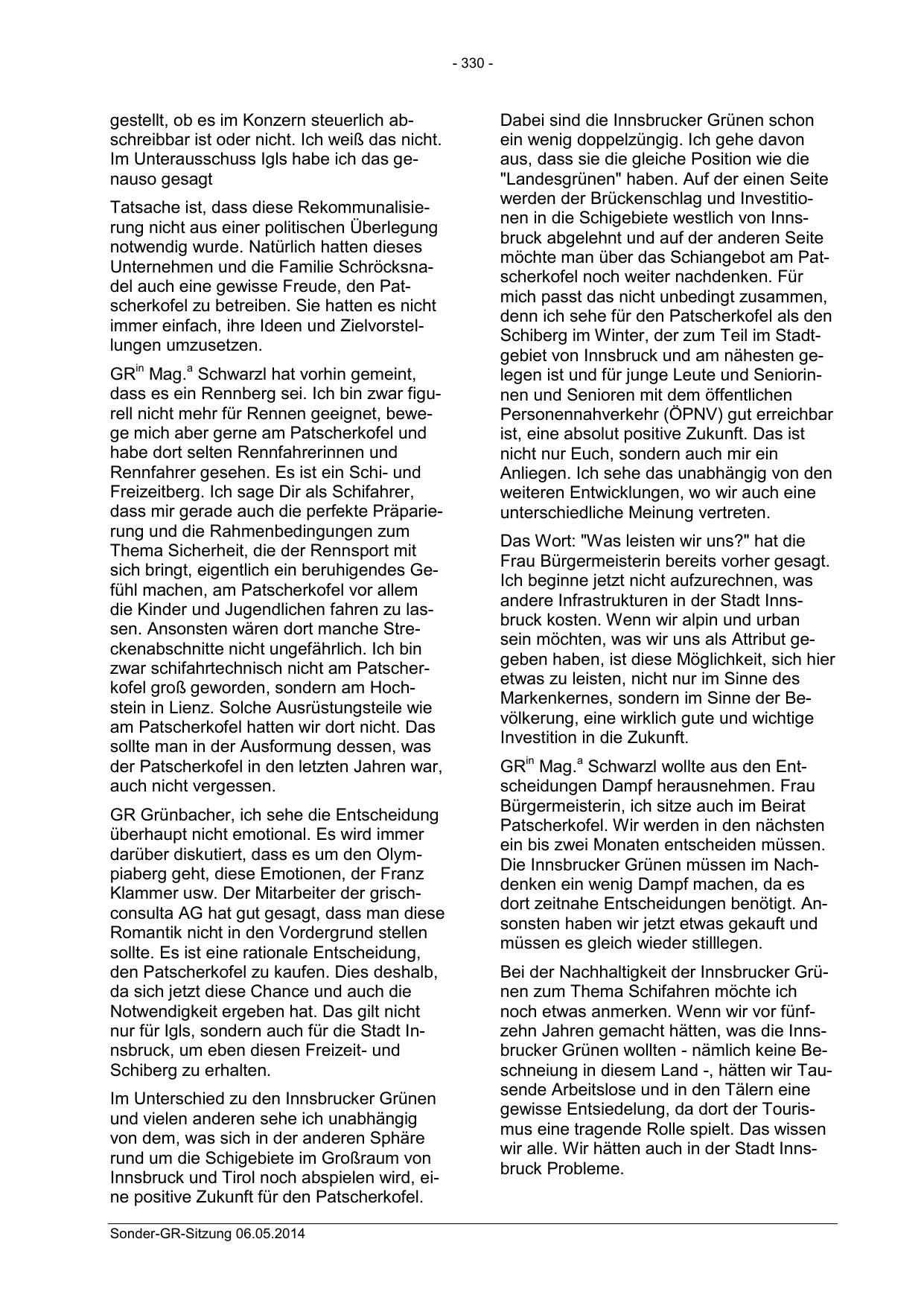 andere Infrastrukturen in der Stadt Innsbruck kosten. Wenn wir alpin und urban