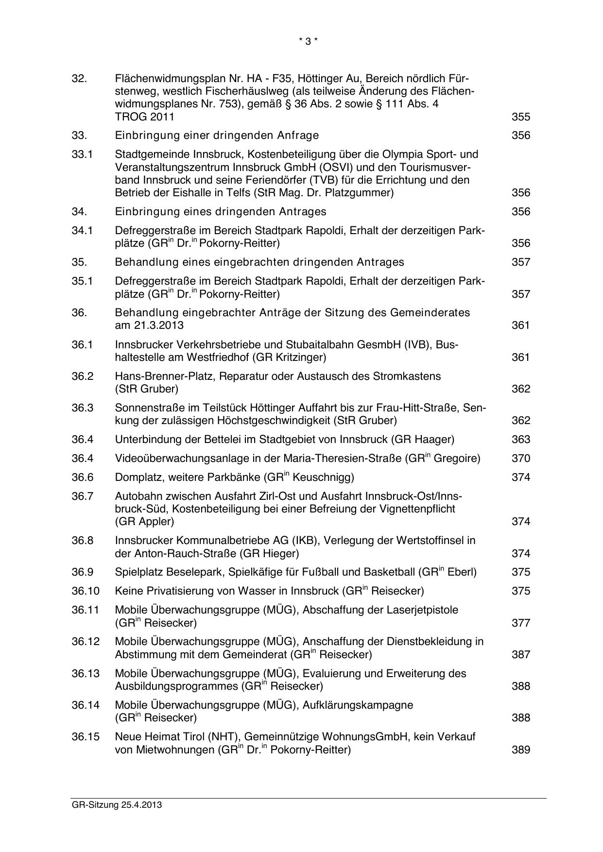 Flächenwidmungsplan Nr. HA - F35, Höttinger Au, Bereich nördlich Fürstenweg, westlich Fischerhäuslweg (als teilweise Änderung des Flächenwidmungsplanes Nr. 753), gemäß § 36 Abs. 2 sowie § 111 Abs. 4