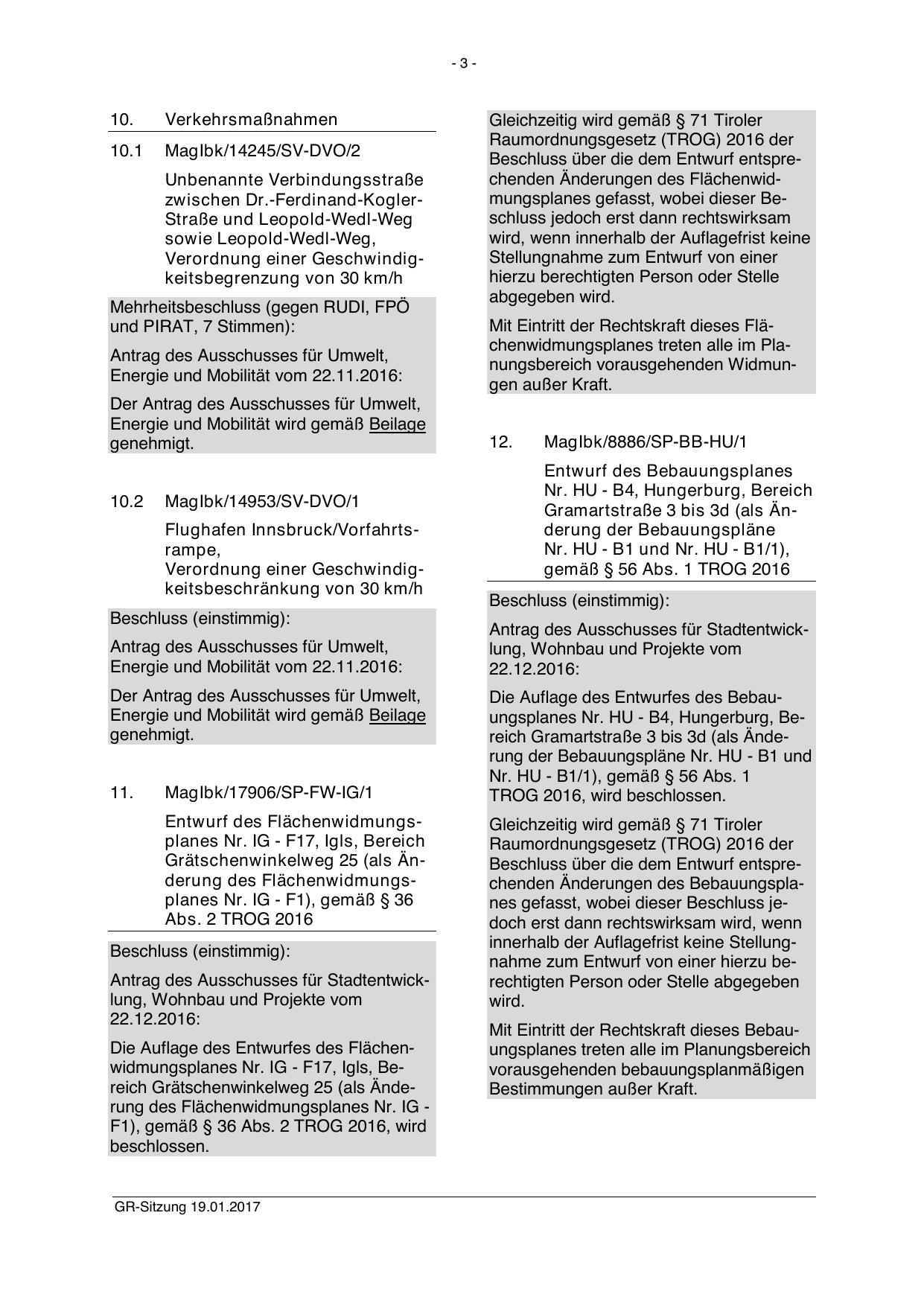 Die Auflage des Entwurfes des Flächenwidmungsplanes Nr. IG - F17, Igls, Bereich Grätschenwinkelweg 25 (als Änderung des Flächenwidmungsplanes Nr. IG F1), gemäß § 36 Abs. 2 TROG 2016, wird