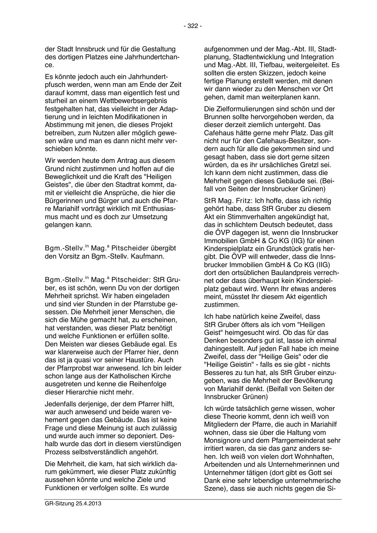 Bgm.-Stellv.in Mag.a Pitscheider: StR Gruber, es ist schön, wenn Du von der dortigen