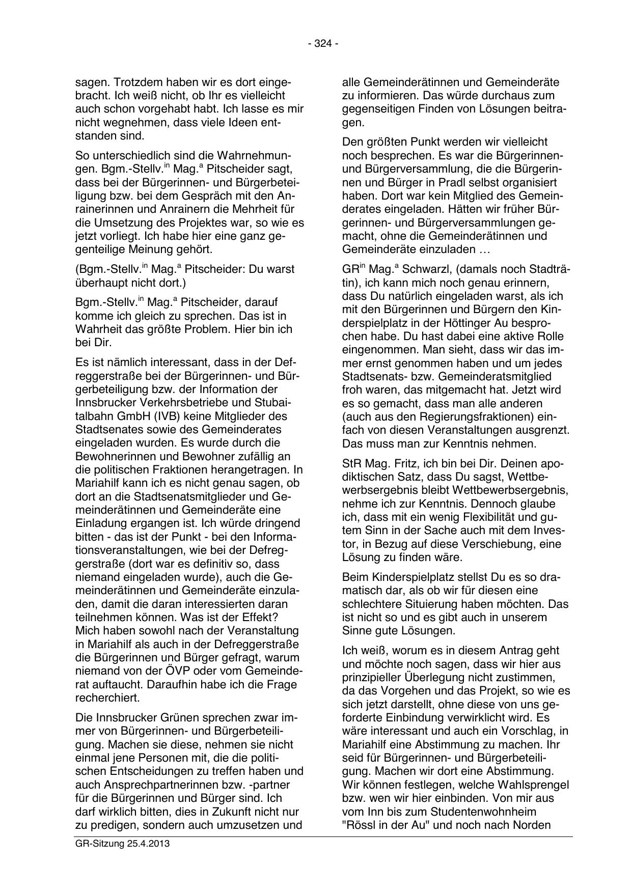 noch besprechen. Es war die Bürgerinnenund Bürgerversammlung, die die Bürgerinnen und Bürger in Pradl selbst organisiert