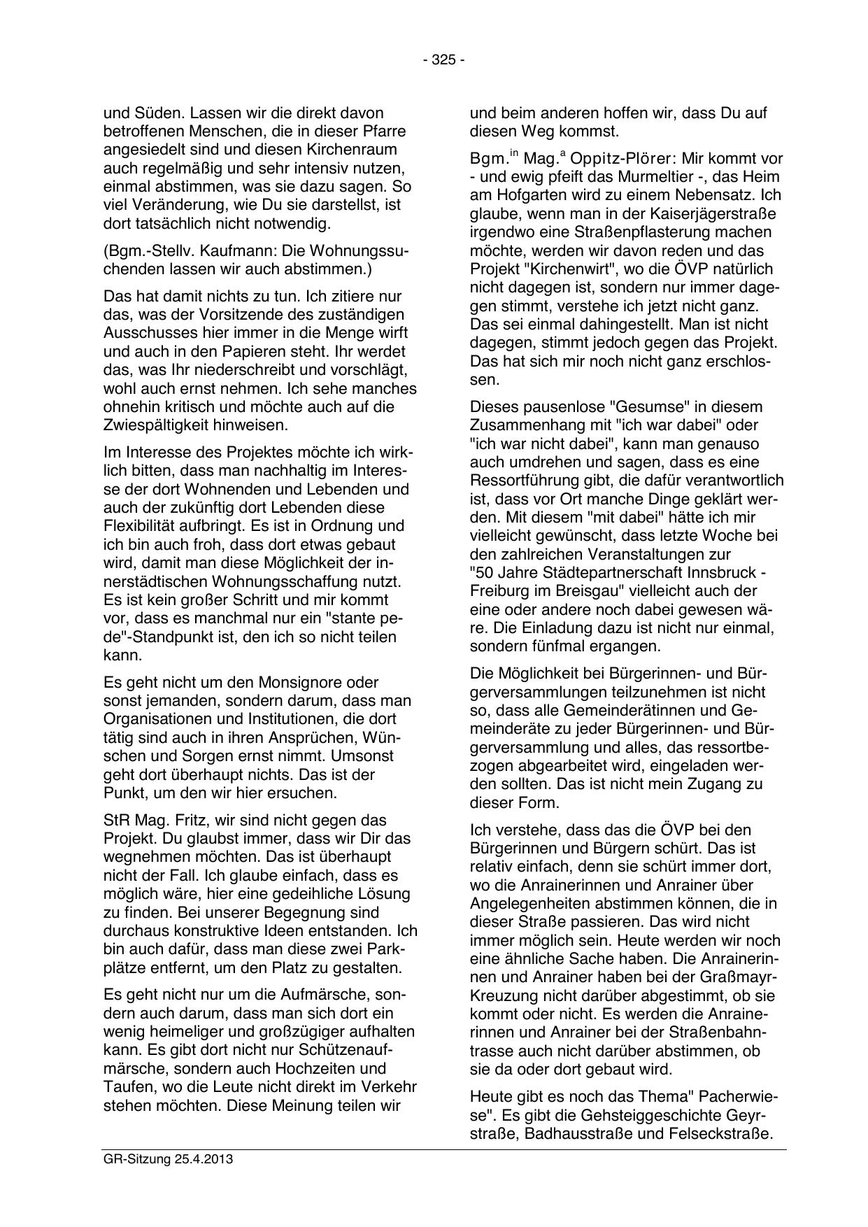 eine ähnliche Sache haben. Die Anrainerinnen und Anrainer haben bei der GraßmayrKreuzung nicht darüber abgestimmt, ob sie