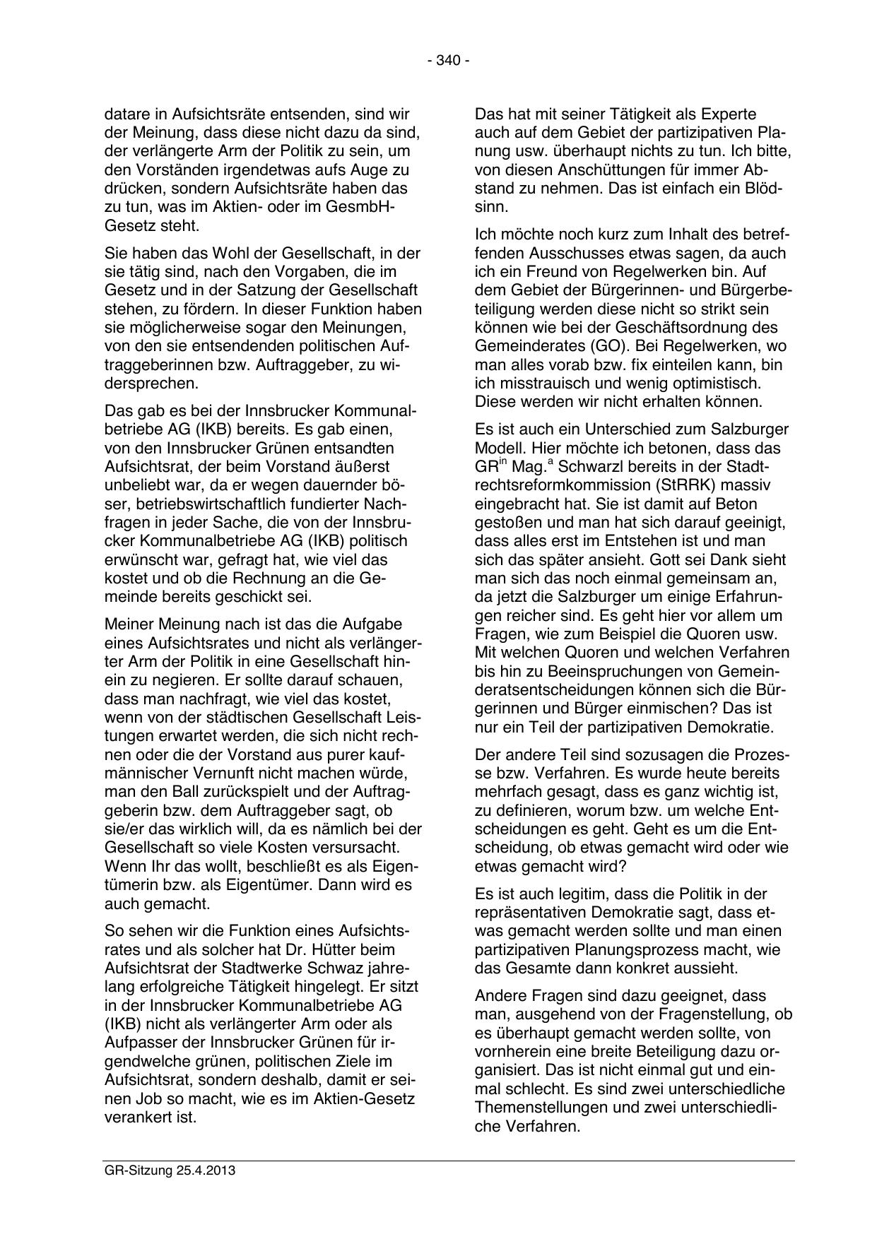 unbeliebt war, da er wegen dauernder böser, betriebswirtschaftlich fundierter Nachfragen in jeder Sache, die von der Innsbrucker Kommunalbetriebe AG (IKB) politisch