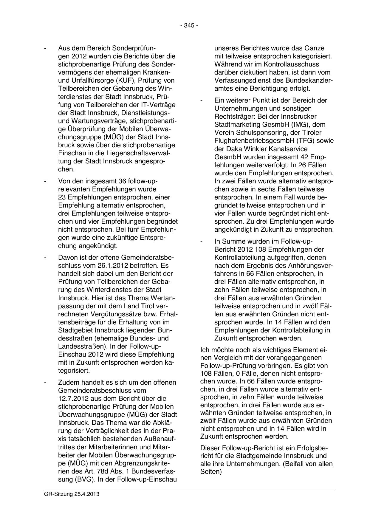 Dieser Follow-up-Bericht ist ein Erfolgsbericht für die Stadtgemeinde Innsbruck und
