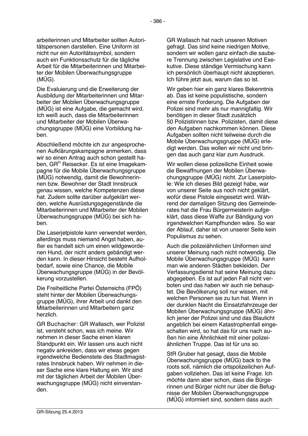 wir so einen Antrag auch schon gestellt haben, GRin Reisecker. Es ist eine Imagekampagne für die Mobile Überwachungsgruppe