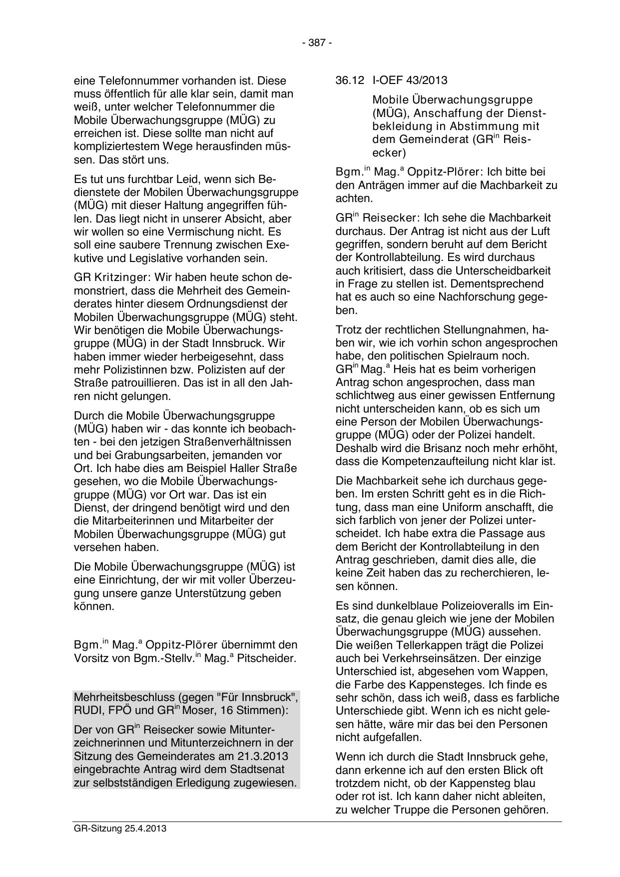 Mehrheitsbeschluss (gegen "Für Innsbruck",