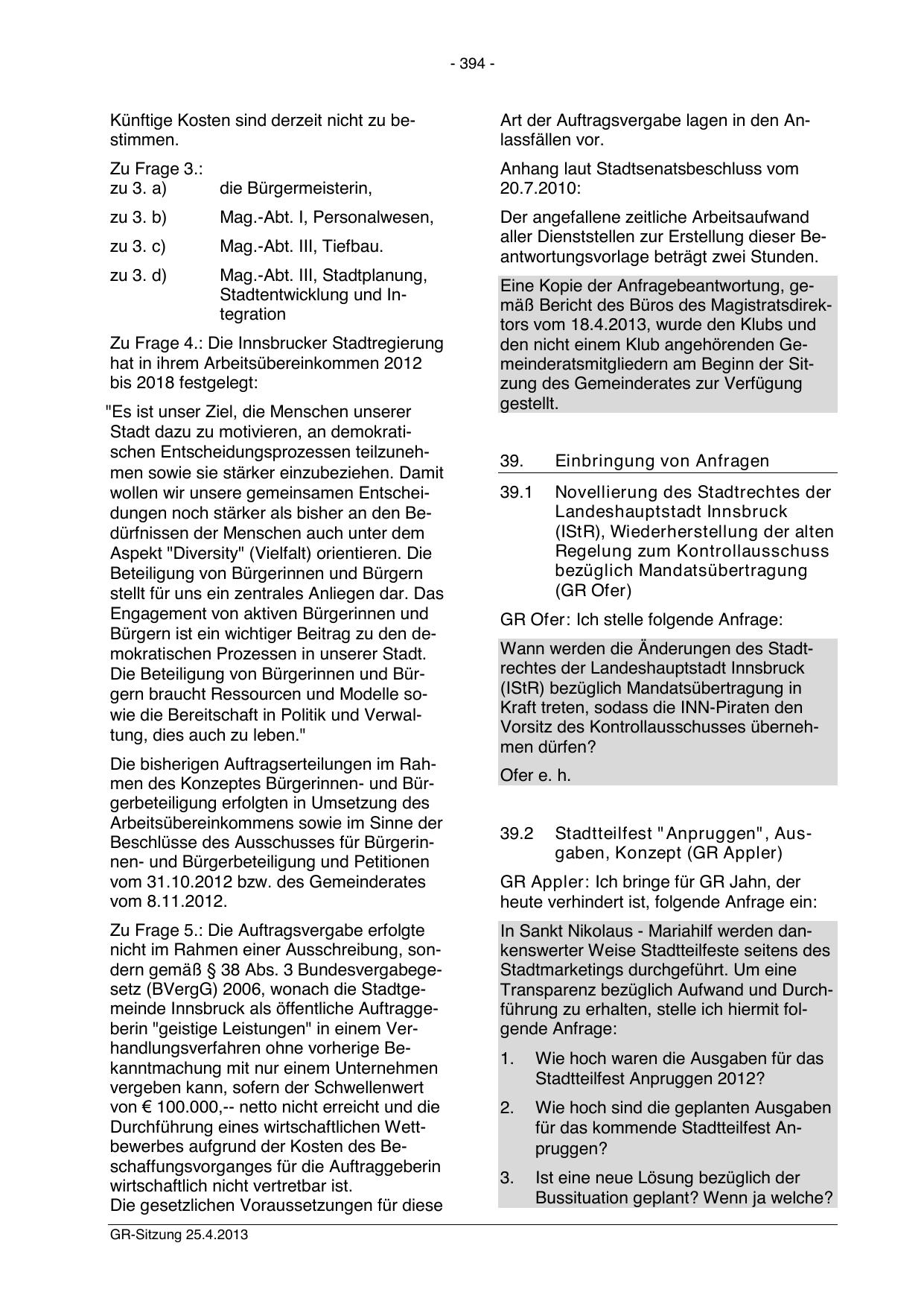 Zu Frage 4.: Die Innsbrucker Stadtregierung