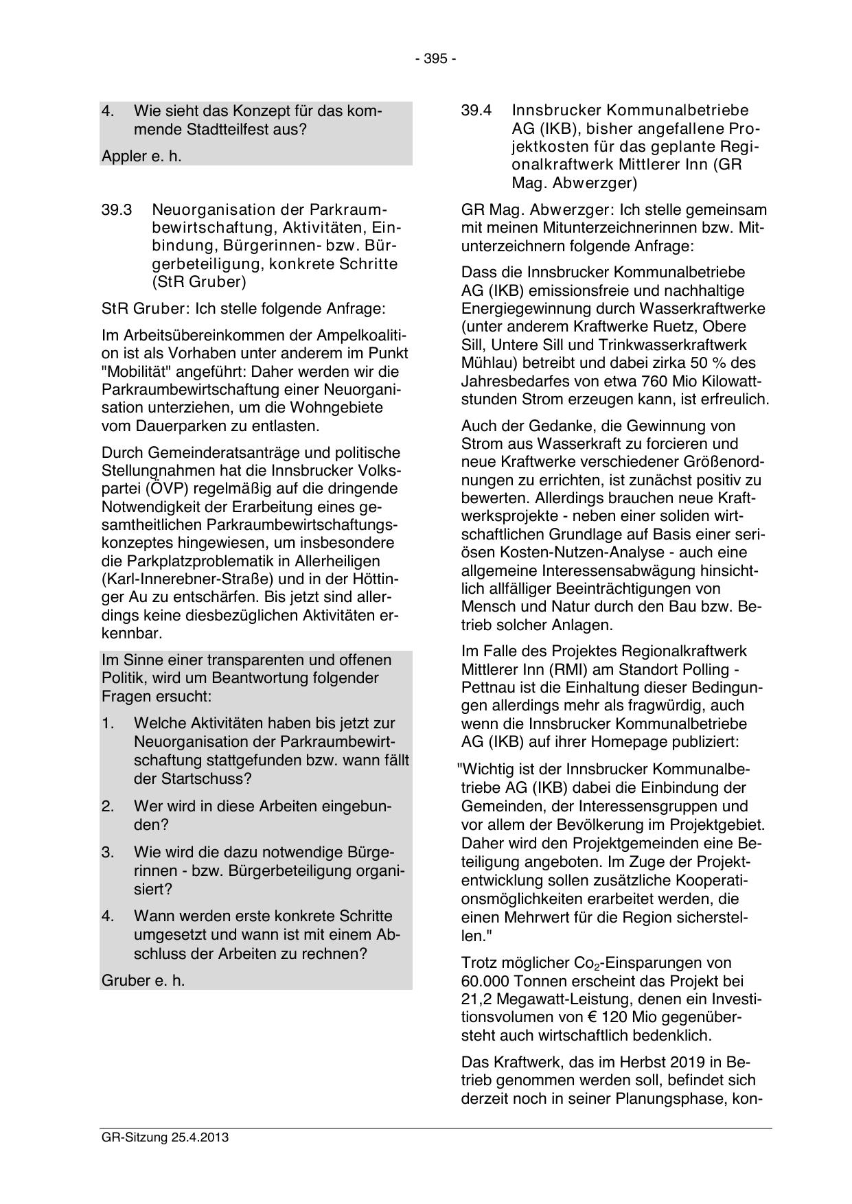Stellungnahmen hat die Innsbrucker Volkspartei (ÖVP) regelmäßig auf die dringende