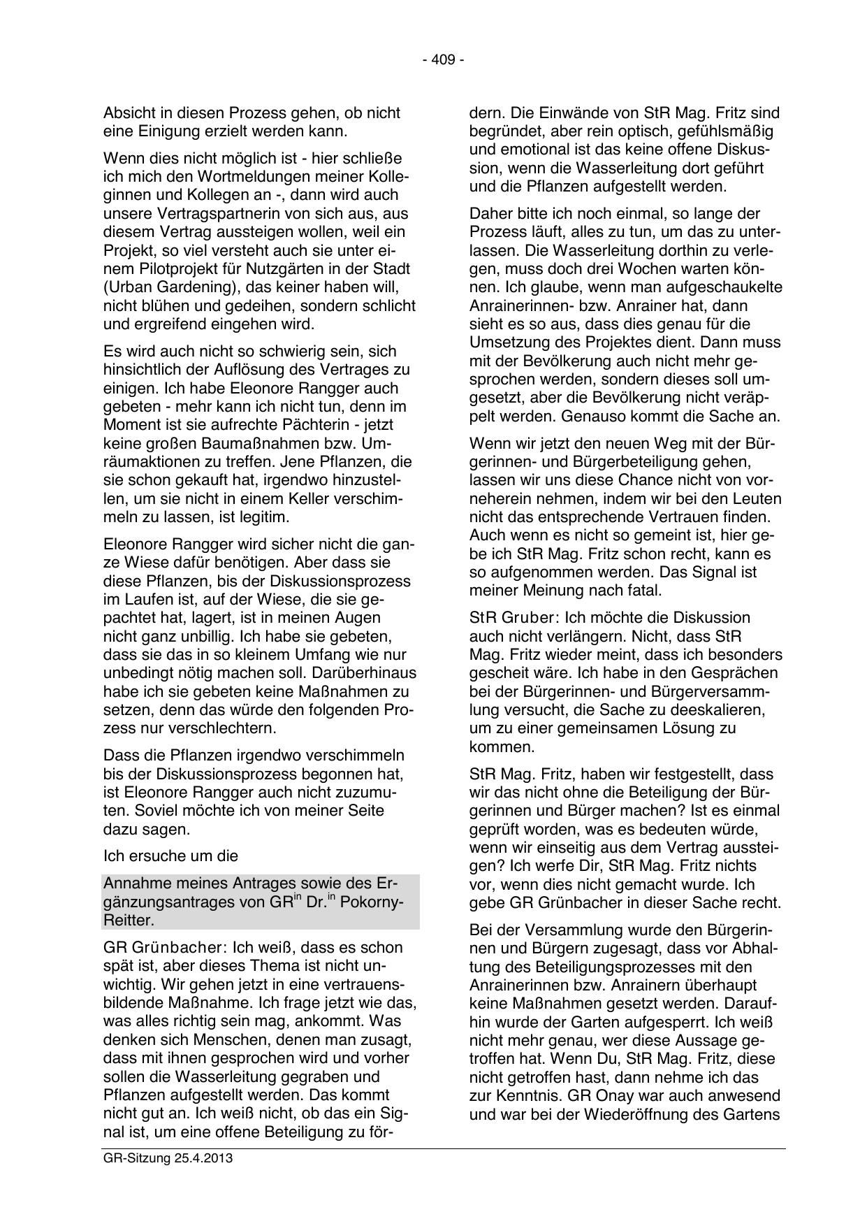 nicht gut an. Ich weiß nicht, ob das ein Signal ist, um eine offene Beteiligung zu förGR-Sitzung 25.4.2013