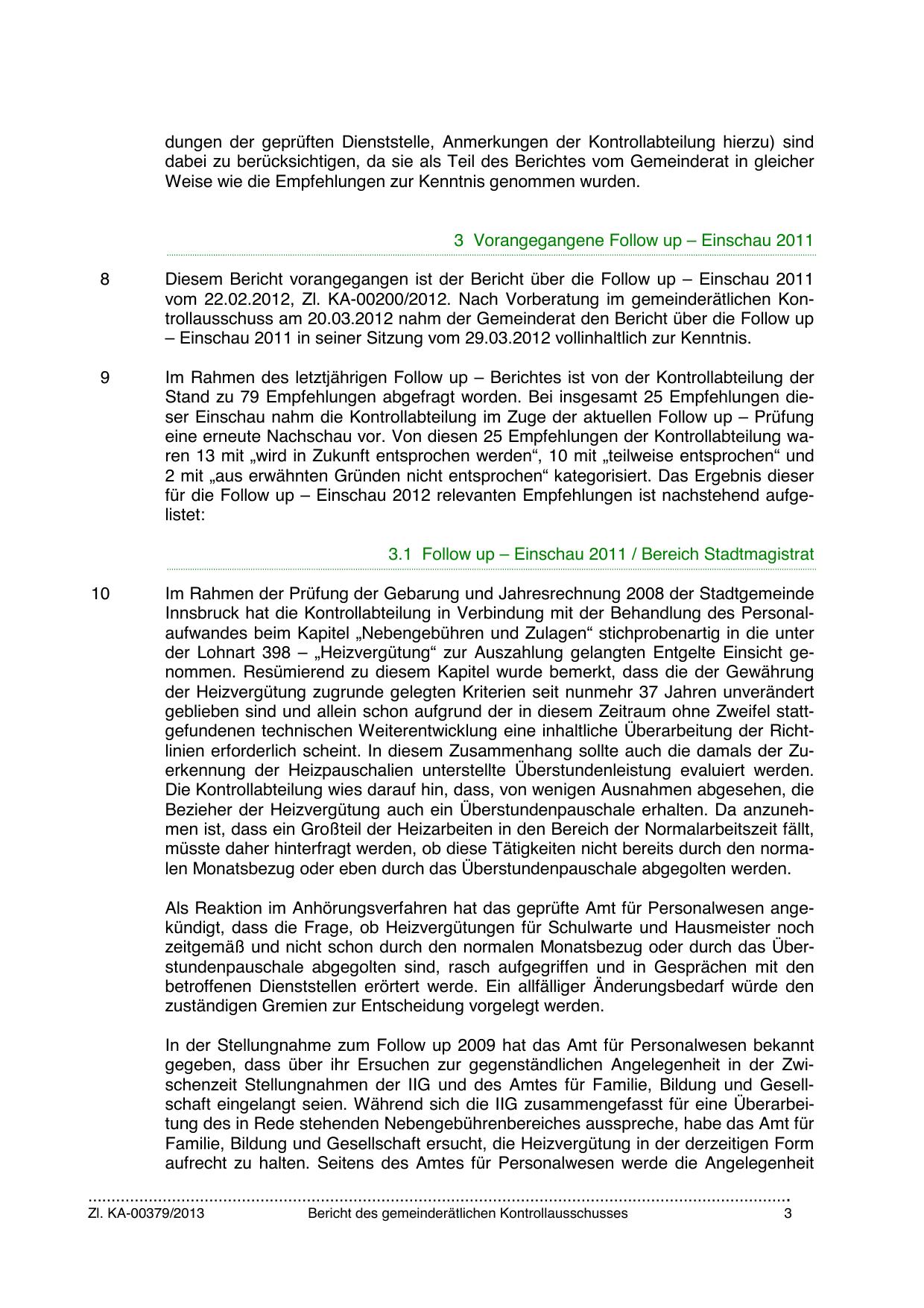 3.1 Follow up – Einschau 2011 / Bereich Stadtmagistrat