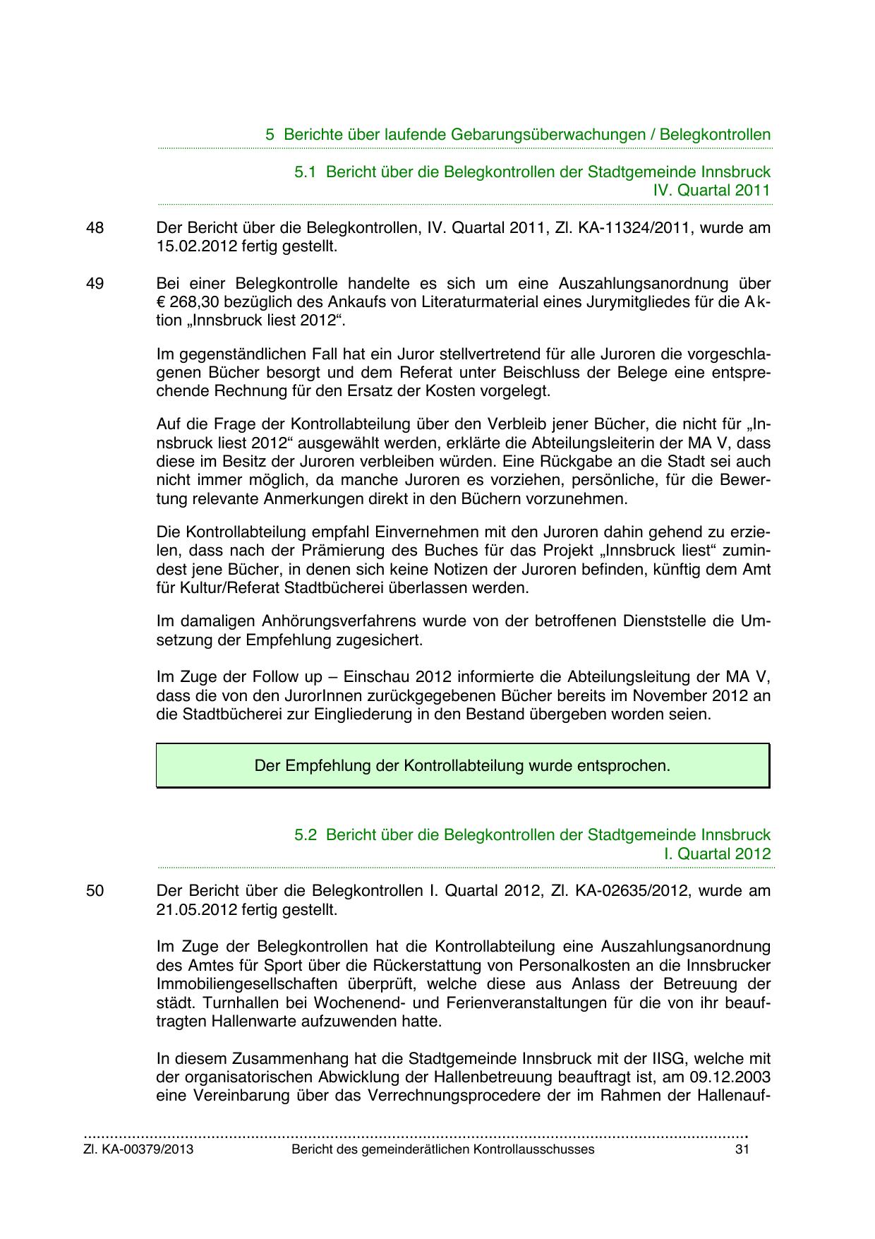 5.1 Bericht über die Belegkontrollen der Stadtgemeinde Innsbruck