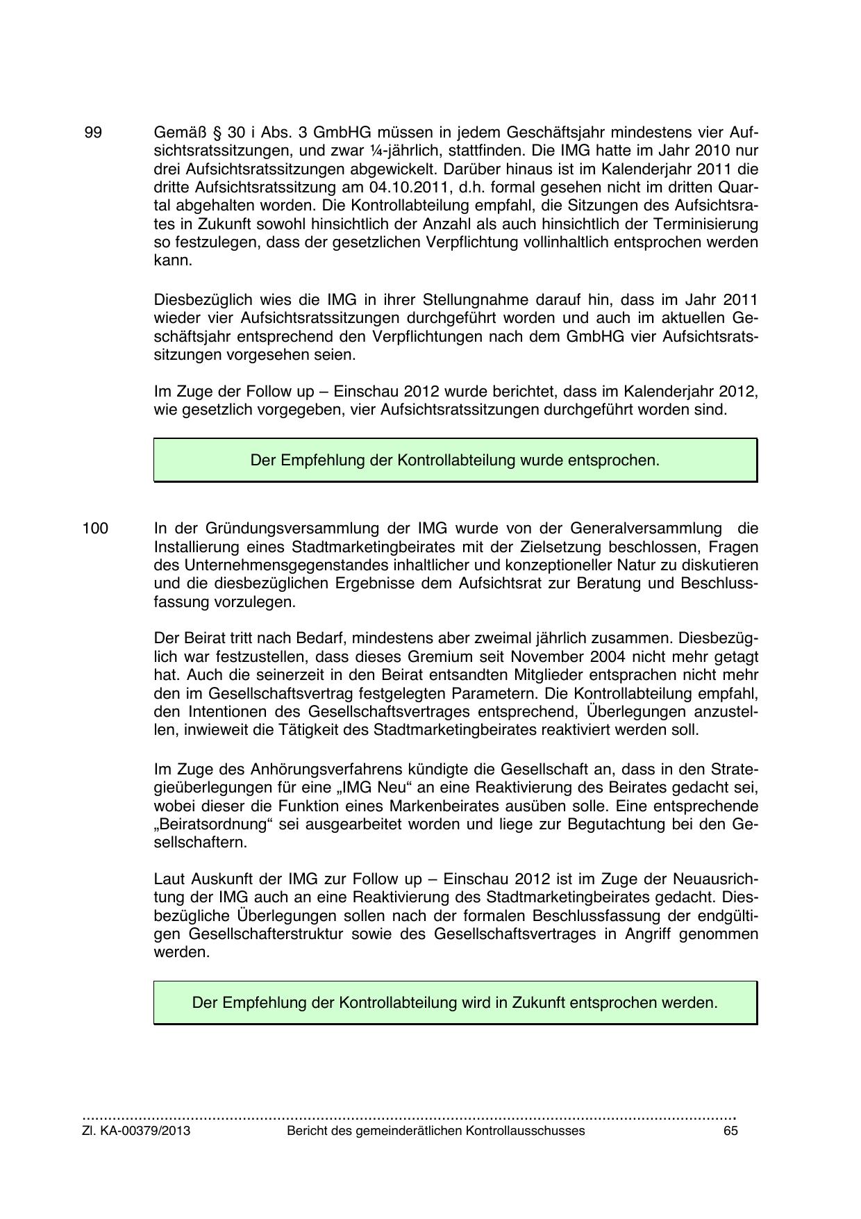 Gemäß § 30 i Abs. 3 GmbHG müssen in jedem Geschäftsjahr mindestens vier Aufsichtsratssitzungen, und zwar ¼-jährlich, stattfinden. Die IMG hatte im Jahr 2010 nur