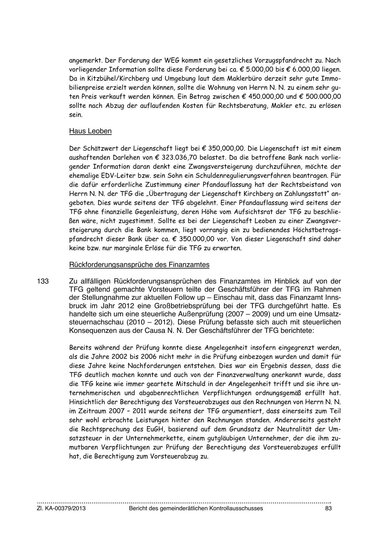 Konsequenzen aus der Causa N. N. Der Geschäftsführer der TFG berichtete: