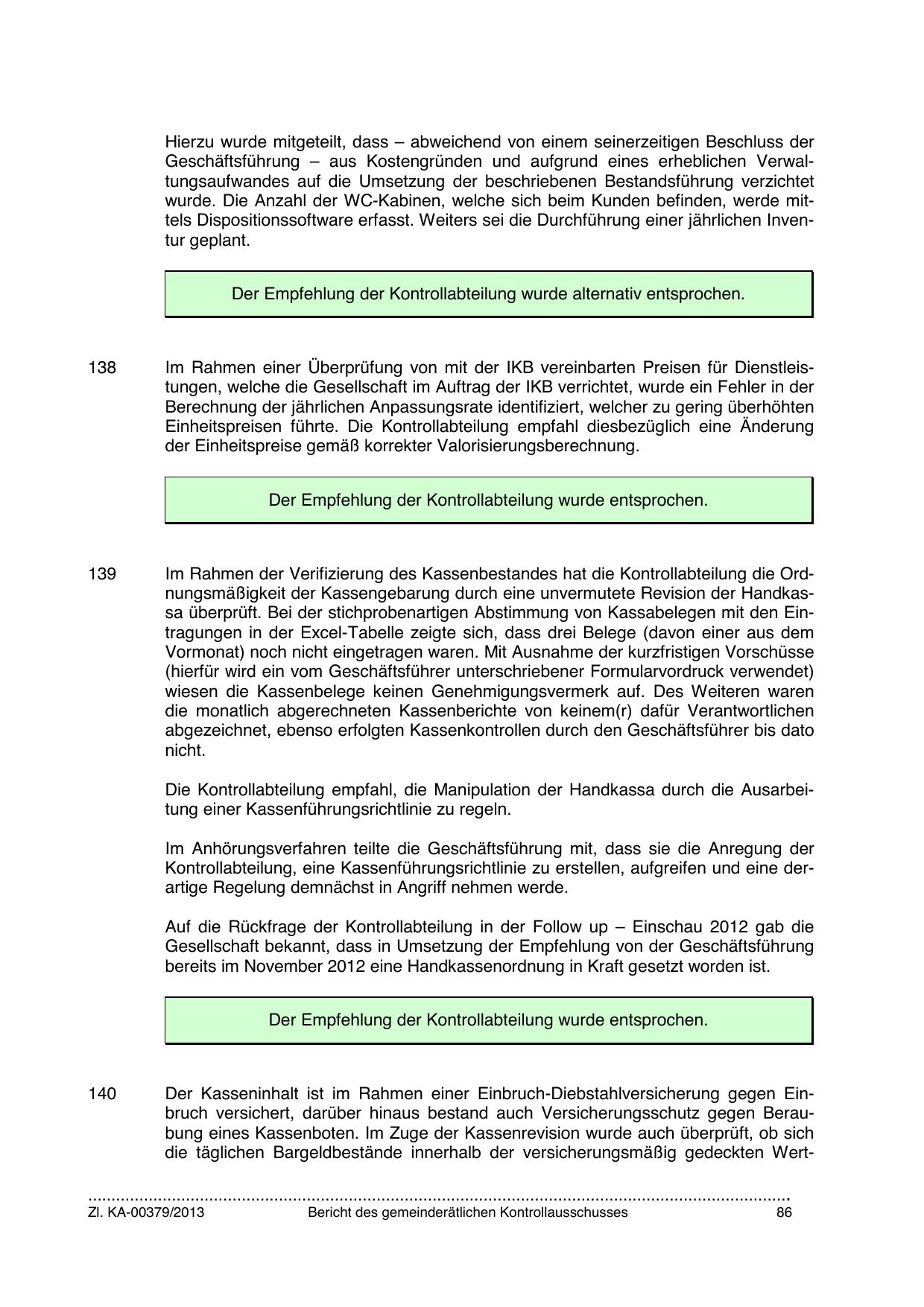 Der Empfehlung der Kontrollabteilung wurde alternativ entsprochen.