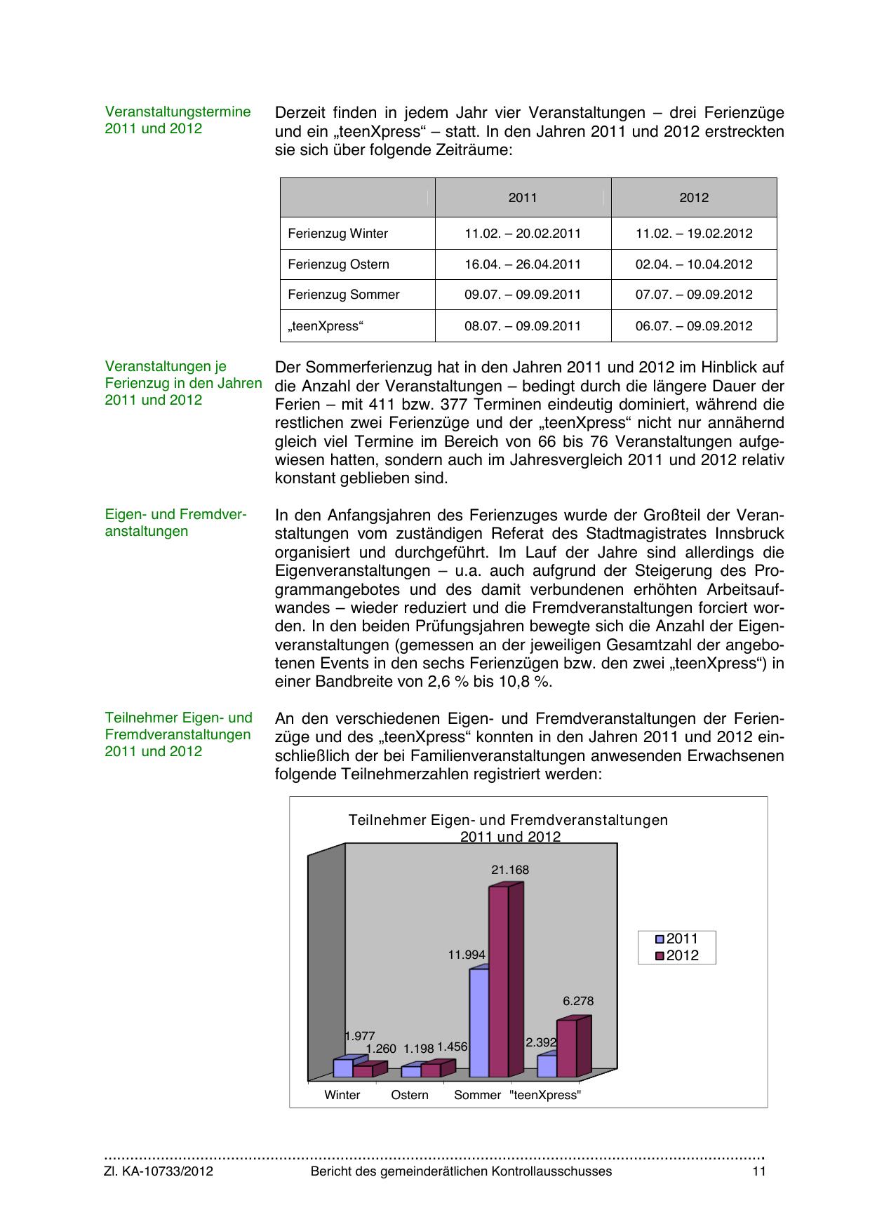 Eigenveranstaltungen – u.a. auch aufgrund der Steigerung des Programmangebotes und des damit verbundenen erhöhten Arbeitsaufwandes – wieder reduziert und die Fremdveranstaltungen forciert worden. In den beiden Prüfungsjahren bewegte sich die Anzahl der Eigenveranstaltungen (gemessen an der jeweiligen Gesamtzahl der angebotenen Events in den sechs Ferienzügen bzw. den zwei „teenXpress“) in