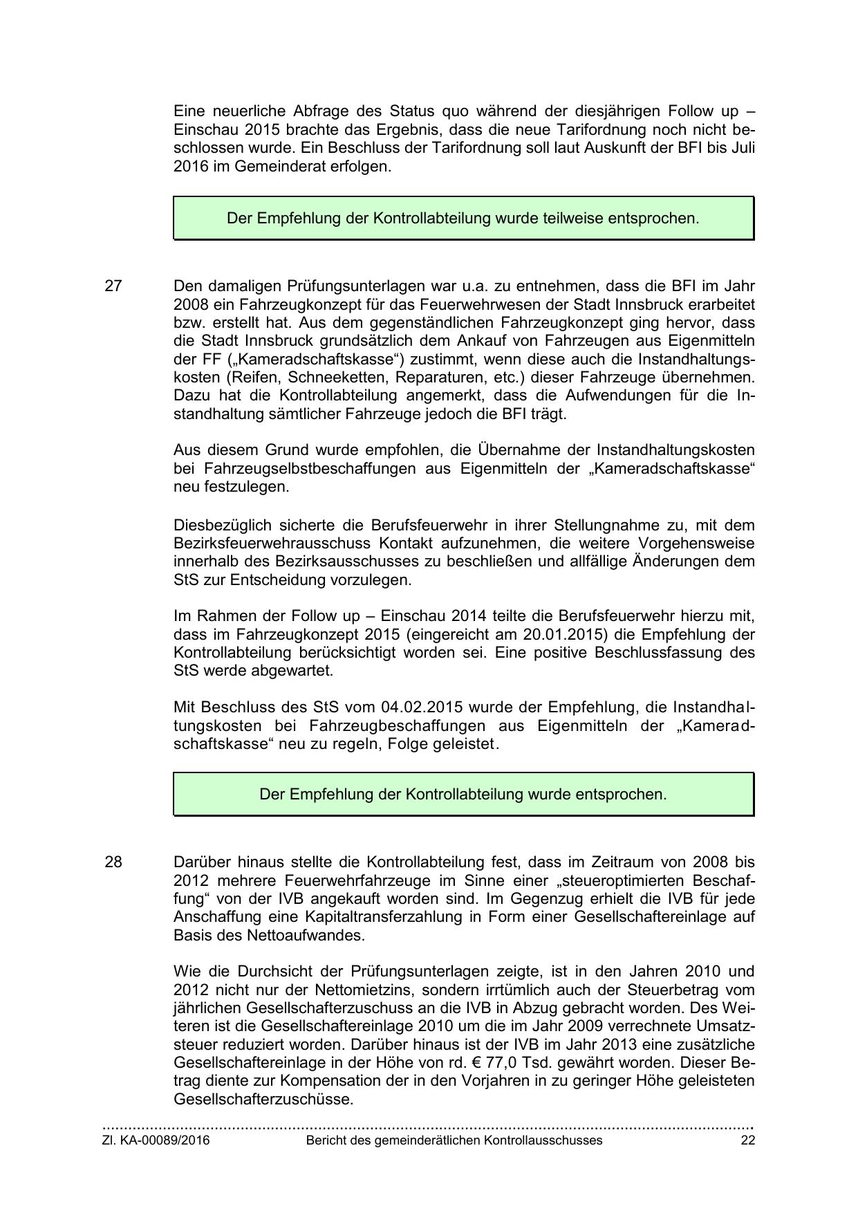 Im Rahmen der Follow up – Einschau 2014 teilte die Berufsfeuerwehr hierzu mit,