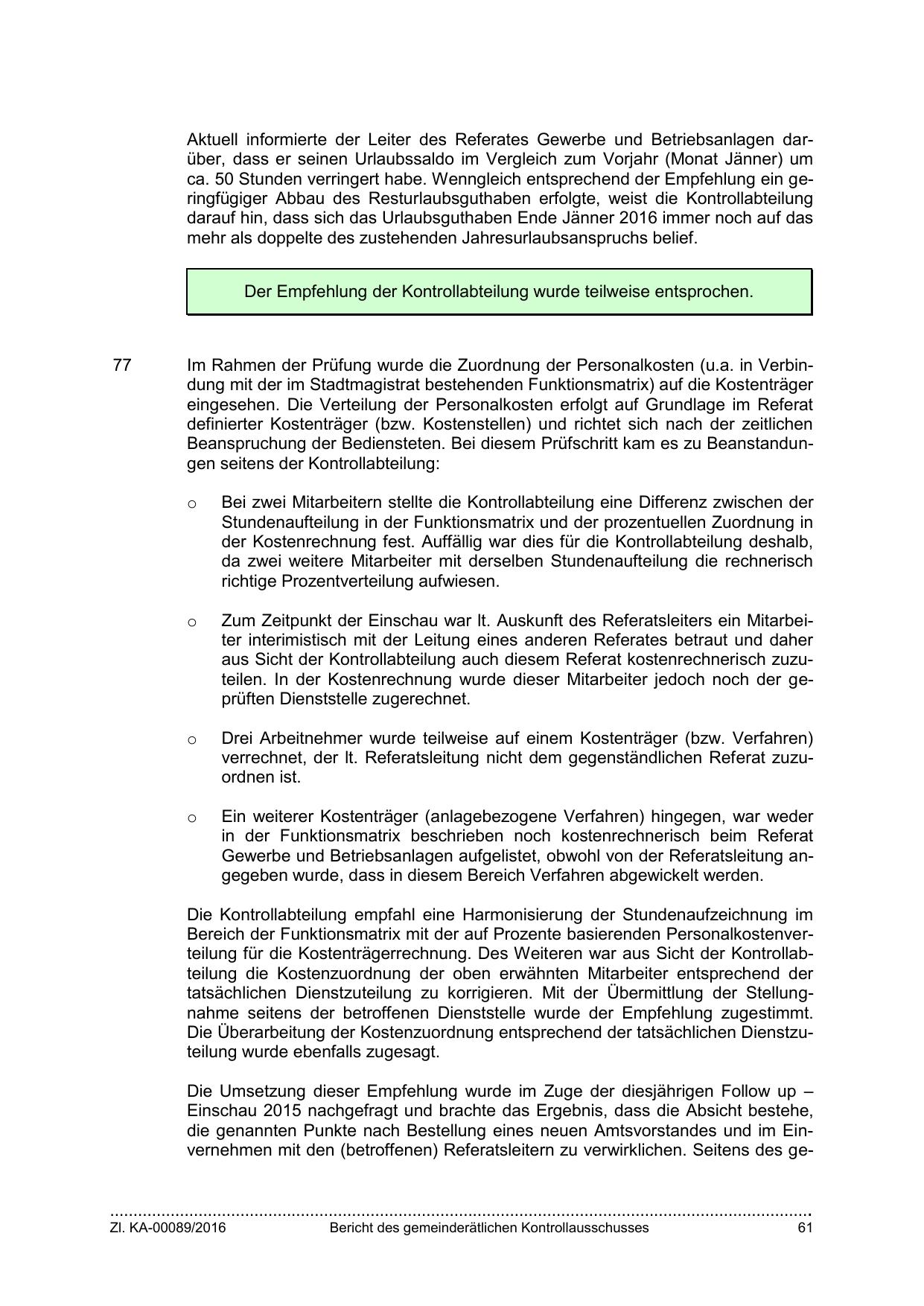 ca. 50 Stunden verringert habe. Wenngleich entsprechend der Empfehlung ein geringfügiger Abbau des Resturlaubsguthaben erfolgte, weist die Kontrollabteilung