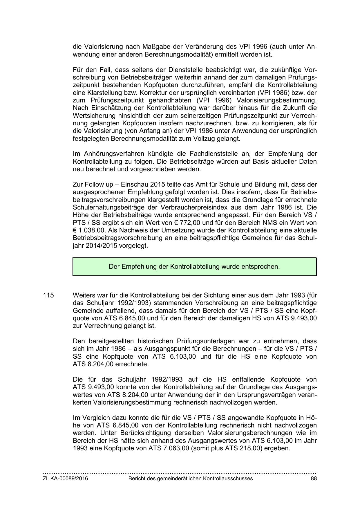 Für den Fall, dass seitens der Dienststelle beabsichtigt war, die zukünftige Vorschreibung von Betriebsbeiträgen weiterhin anhand der zum damaligen Prüfungszeitpunkt bestehenden Kopfquoten durchzuführen, empfahl die Kontrollabteilung