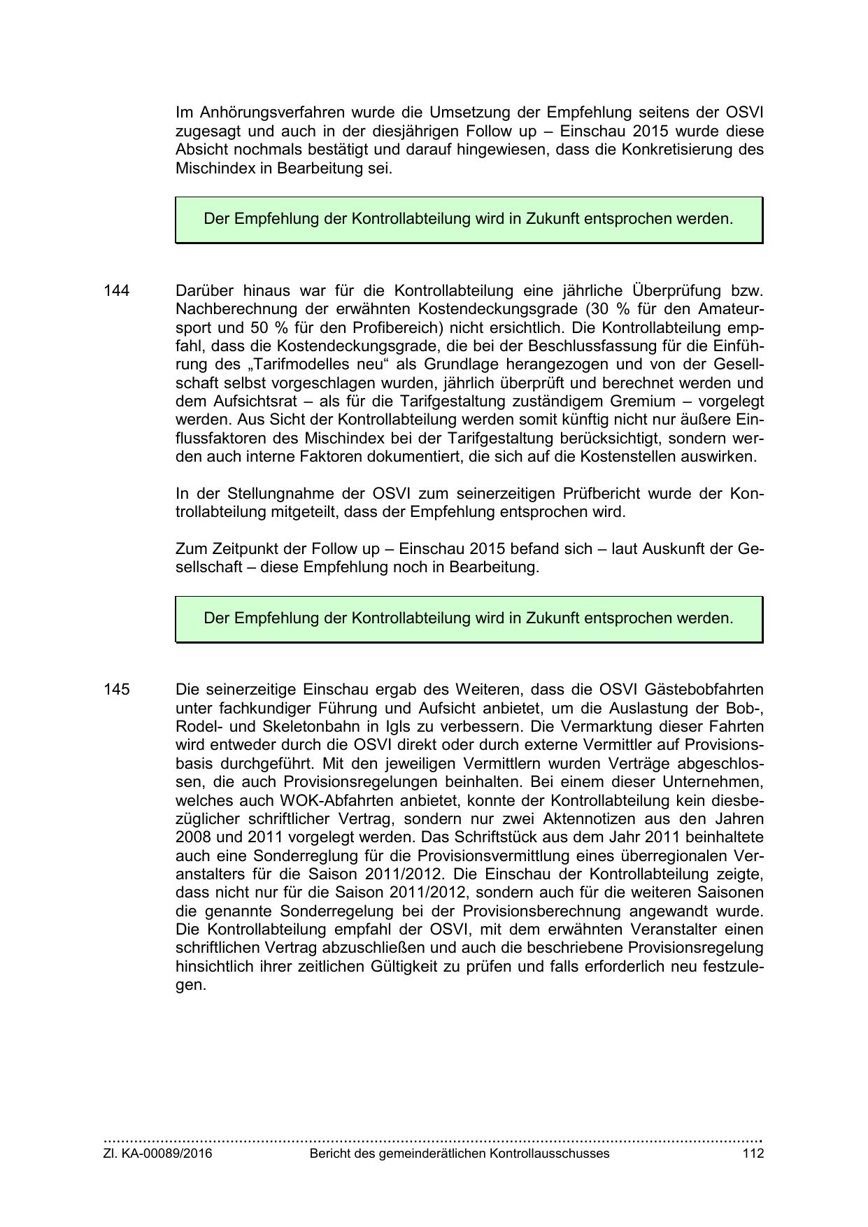 Die seinerzeitige Einschau ergab des Weiteren, dass die OSVI Gästebobfahrten