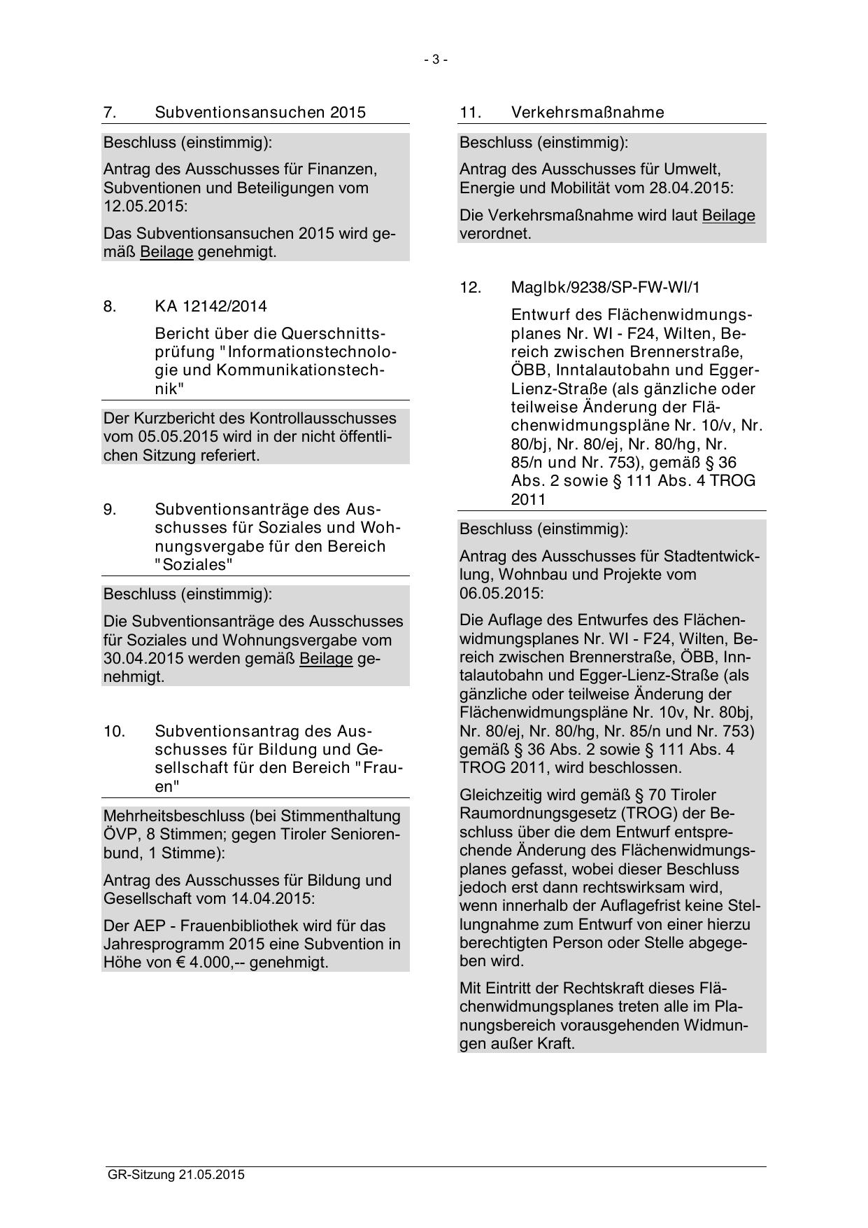 Raumordnungsgesetz (TROG) der Beschluss über die dem Entwurf entsprechende Änderung des Flächenwidmungsplanes gefasst, wobei dieser Beschluss