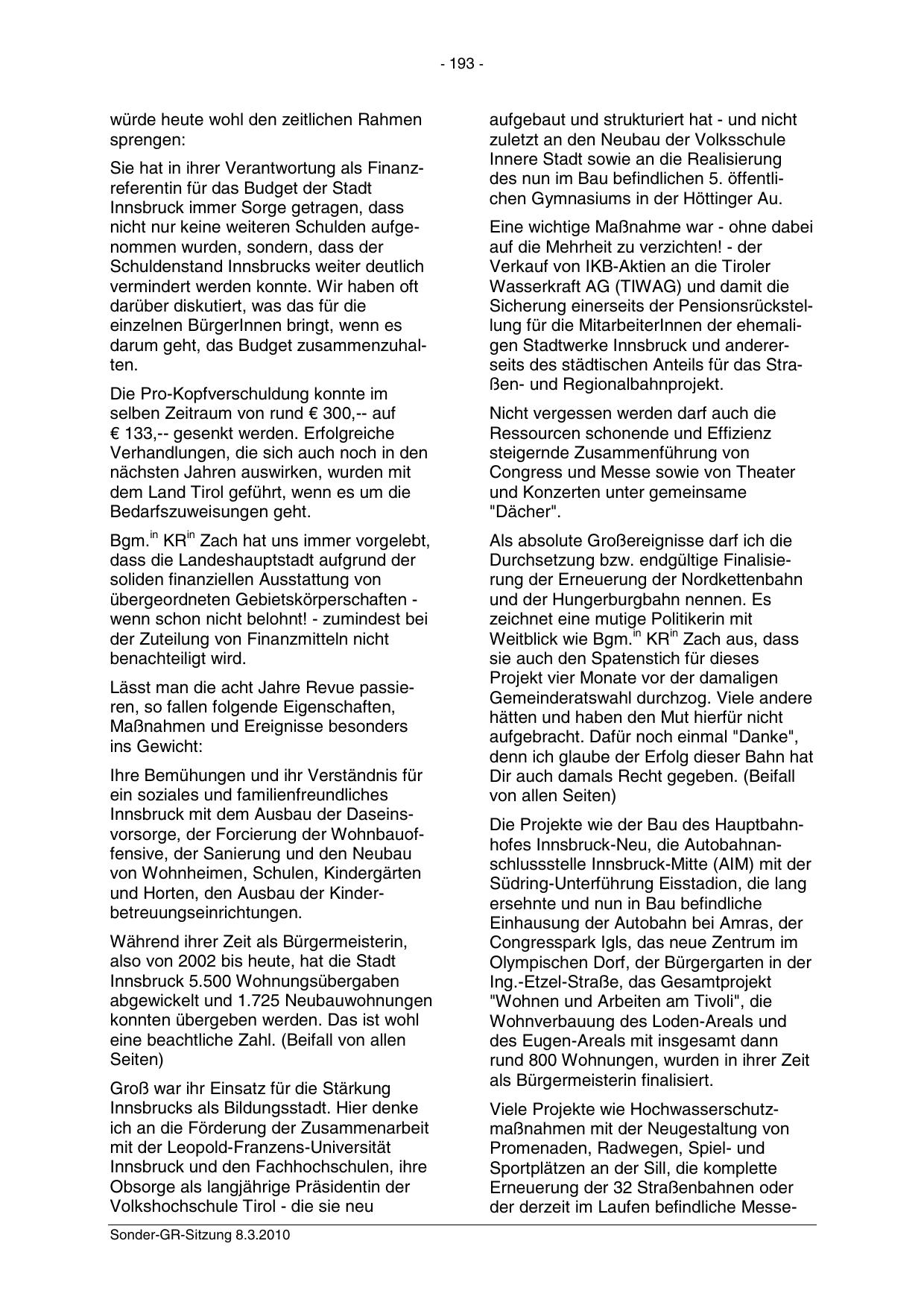 Innsbruck mit dem Ausbau der Daseinsvorsorge, der Forcierung der Wohnbauoffensive, der Sanierung und den Neubau
