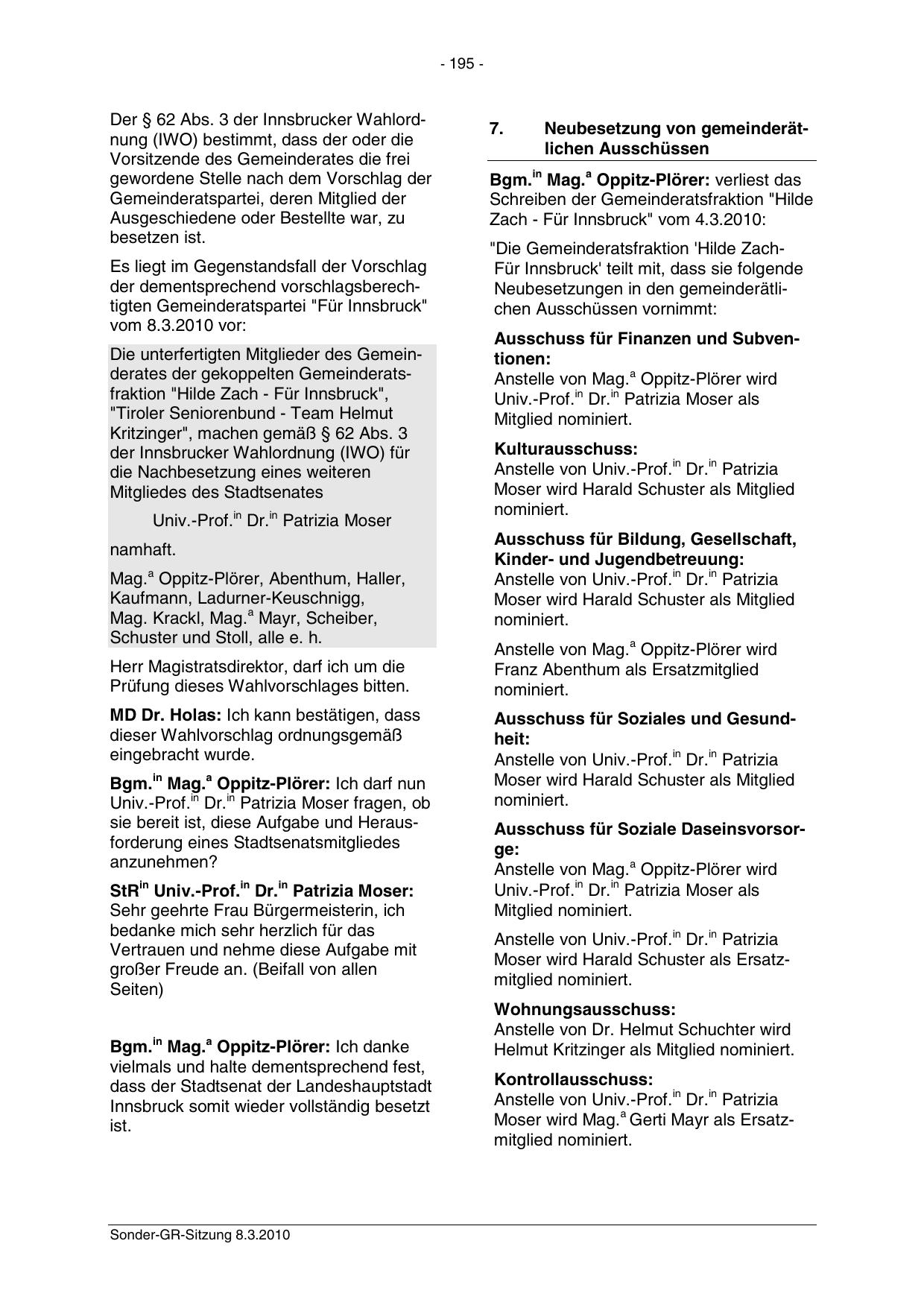 Bgm.in Mag.a Oppitz-Plörer: Ich darf nun