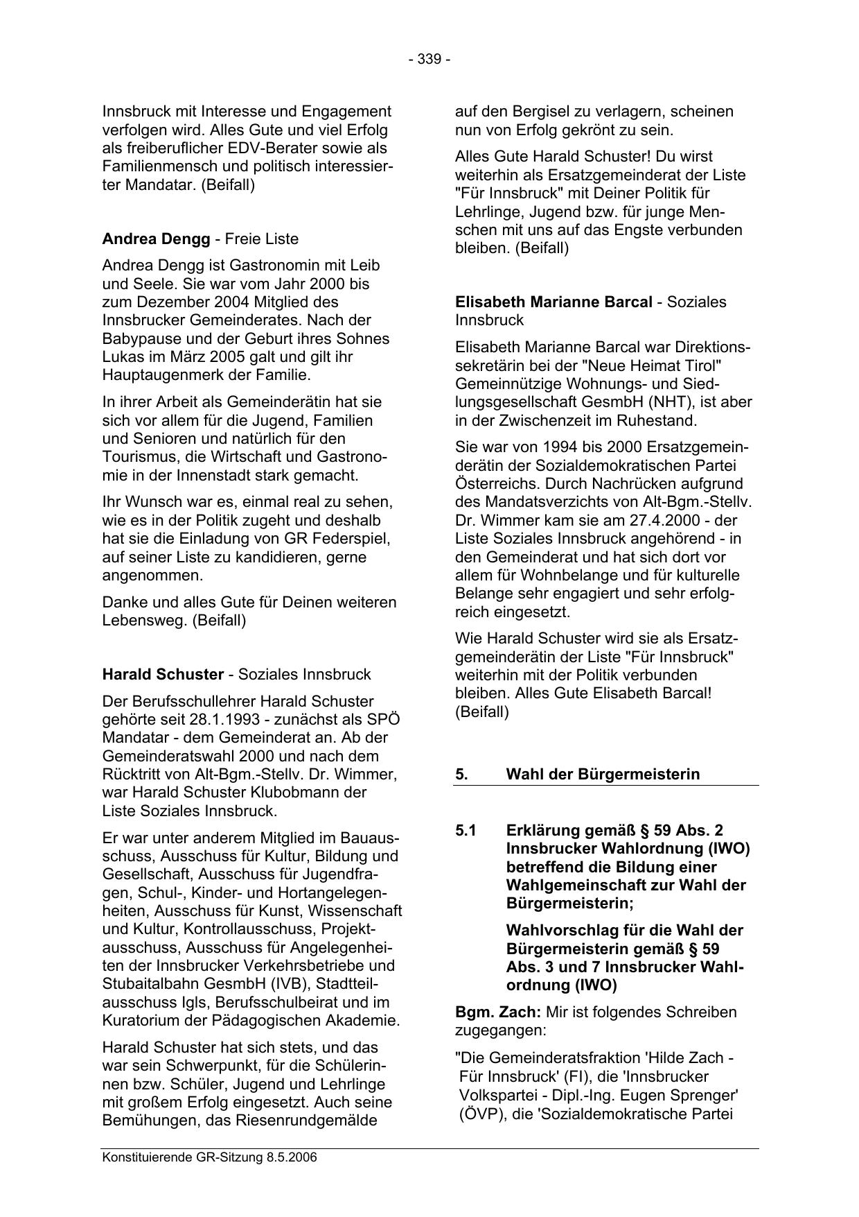 "Die Gemeinderatsfraktion "Hilde Zach Für Innsbruck" (FI), die "Innsbrucker